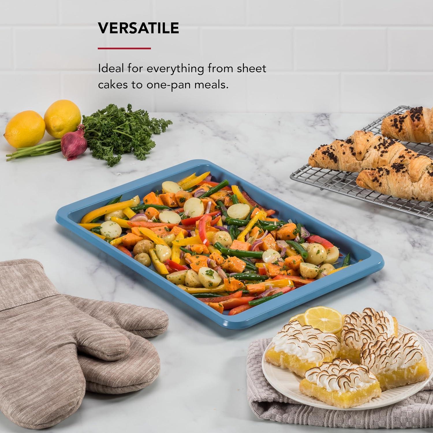 EVEN BAKING: Aluminized steel construction promotes consistent heat distribution across the pan, allowing for evenly baked desserts and perfectly roasted dishes