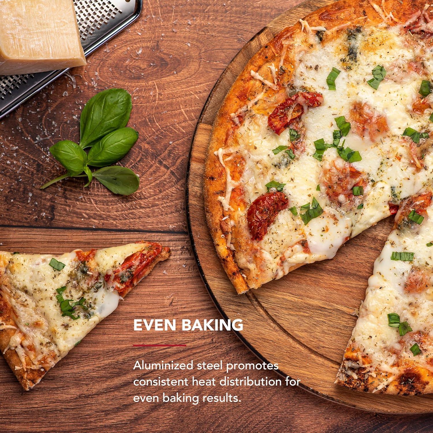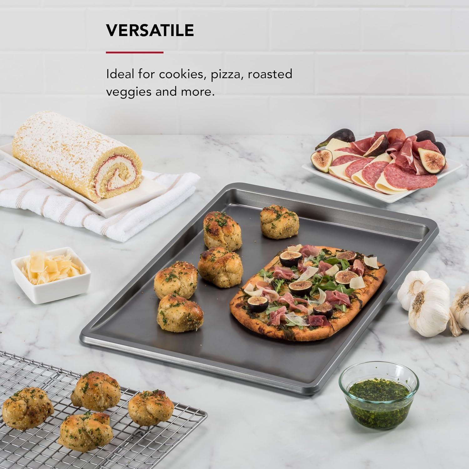 EVEN BAKING: Aluminized steel construction promotes consistent heat distribution across the pan, allowing for evenly baked desserts and perfectly roasted dishes
