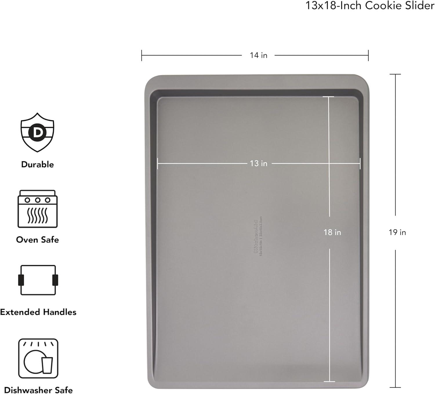 KitchenAid 13x18in Nonstick Aluminized Steel Cookie Slider, Mineral Water(Contour Silver)