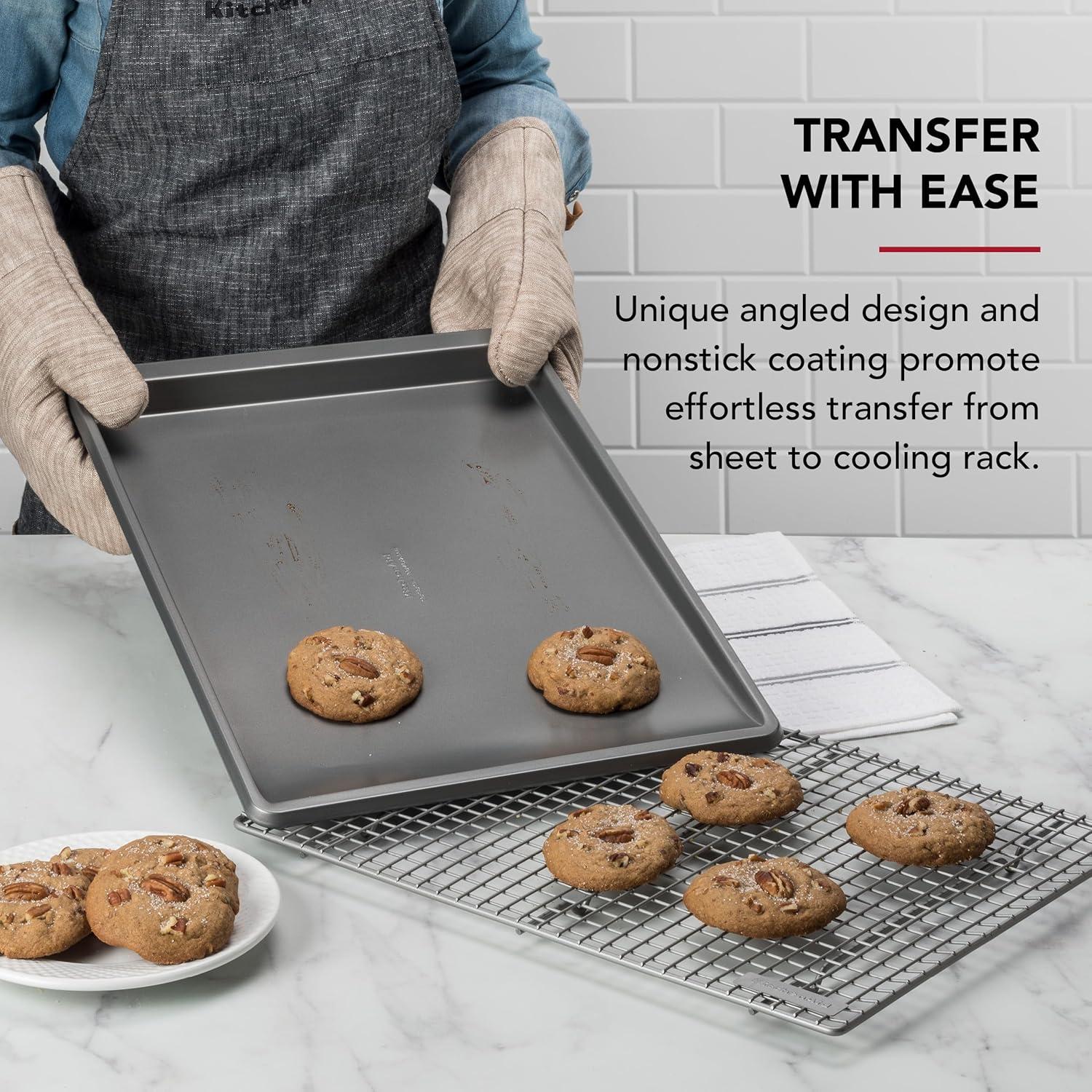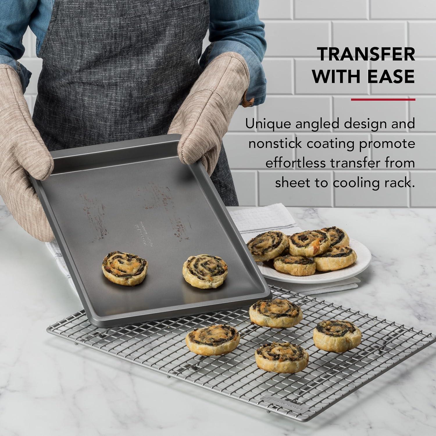 TRANSFER WITH EASE: Unique angled design and nonstick coating promote effortless transfer from sheet to cooling rack