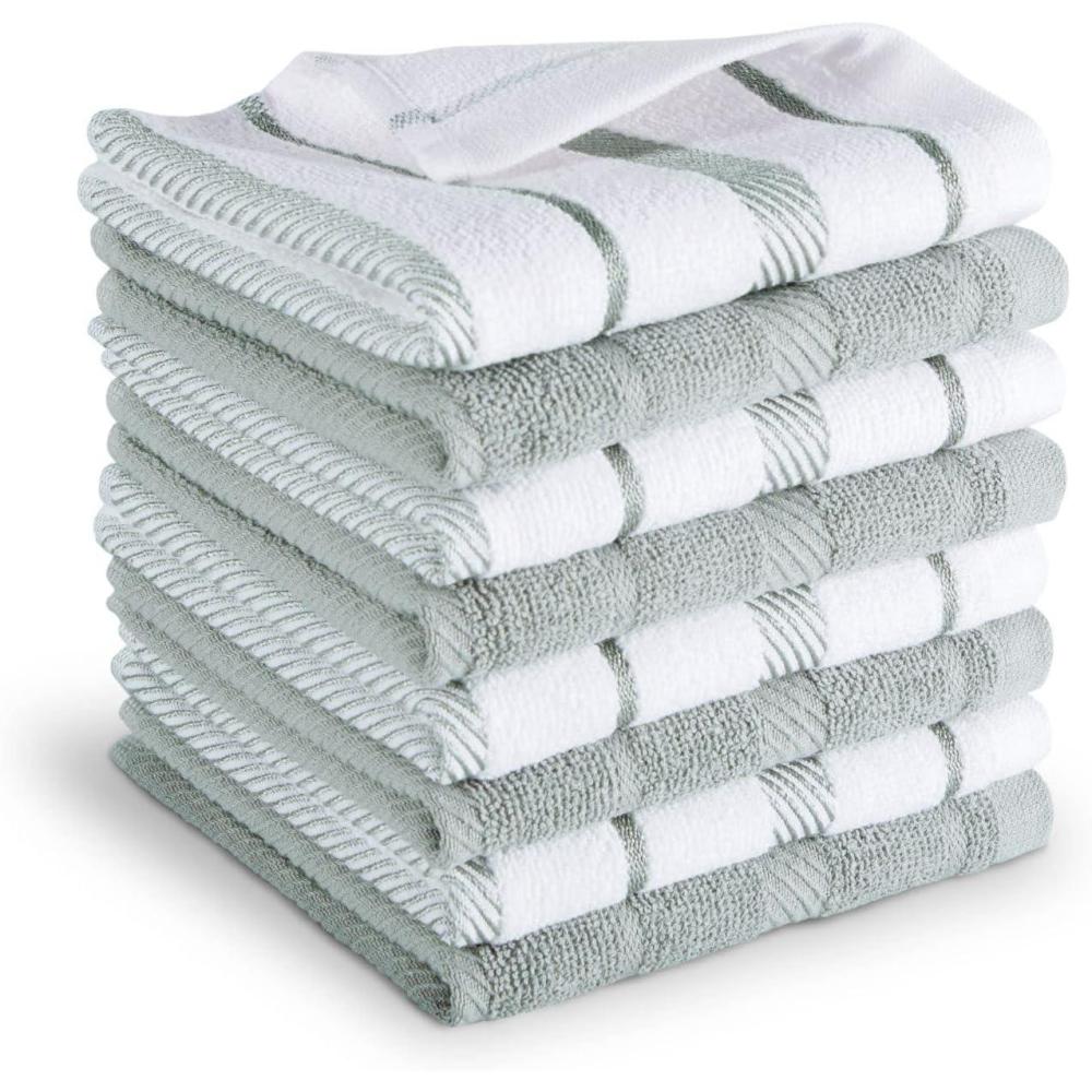 KitchenAid Albany Dishcloth 8 Pack Set, Aqua Sky/White, 12″x12″(Matte Grey/White)