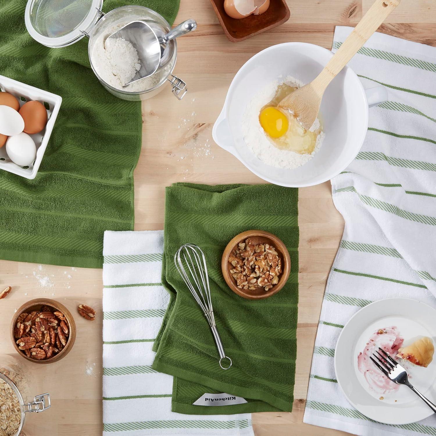 KitchenAid Albany Kitchen Towel 4-Pack Set, Blue Velvet/White, 16″x26″(Matcha)