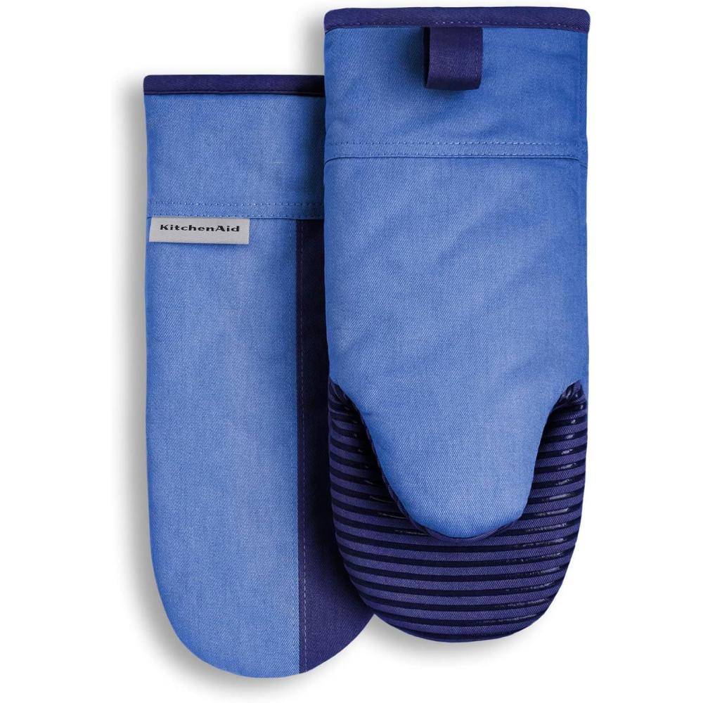 KitchenAid Beacon Two-Tone Non-Slip Oven Mitt Set, Aqua Sky, 5.75″x13″, 2 Piece(Blue Corn/Cobalt)