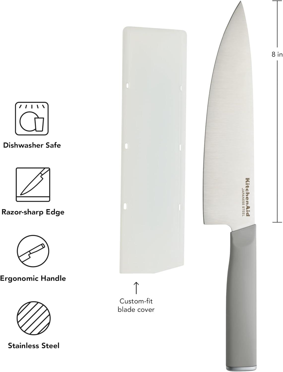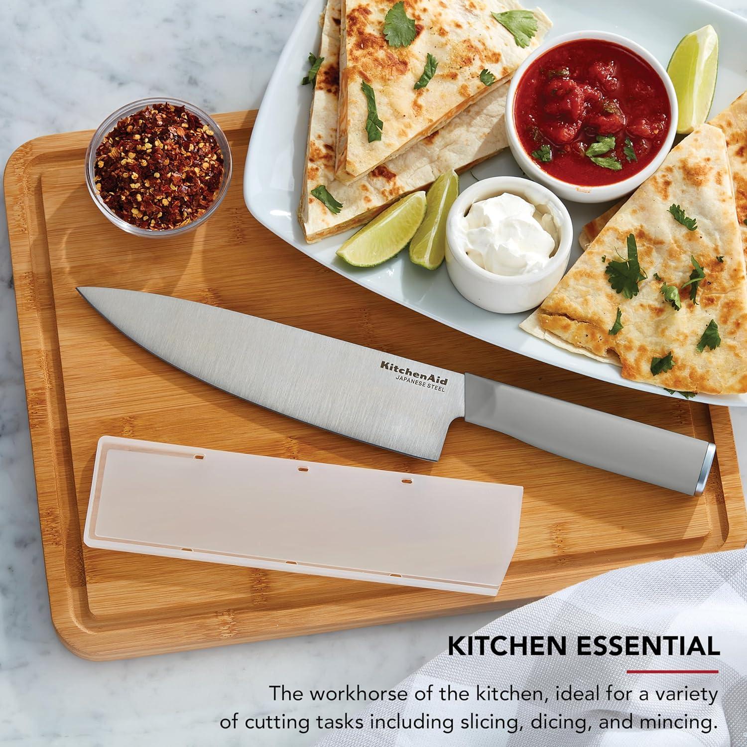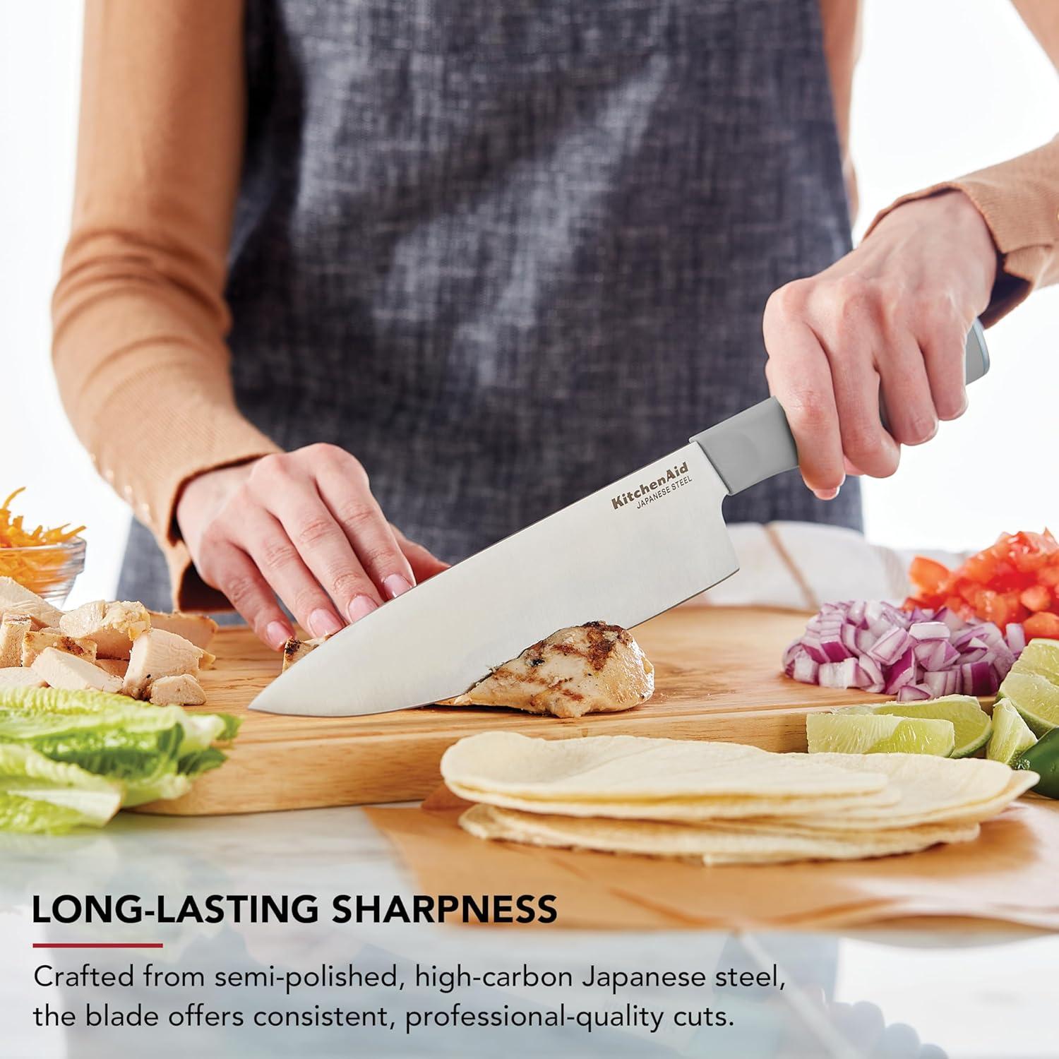 ERGONOMIC HANDLE: These KitchenAid knives feature Eastern-style ergonomic handles that provide optimal control for everyday use. They are expertly engineered with a textured finish for a comfortable grip and accented with a chrome endcap.