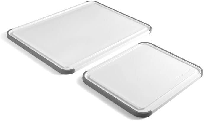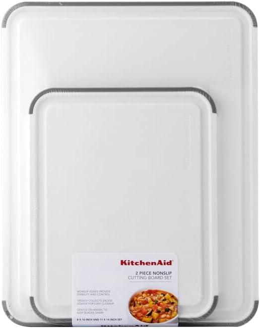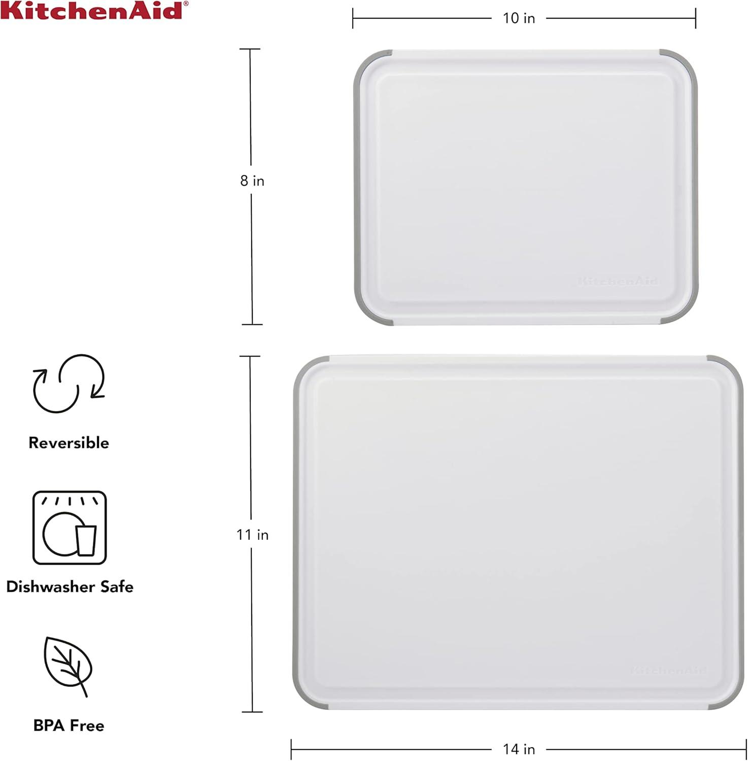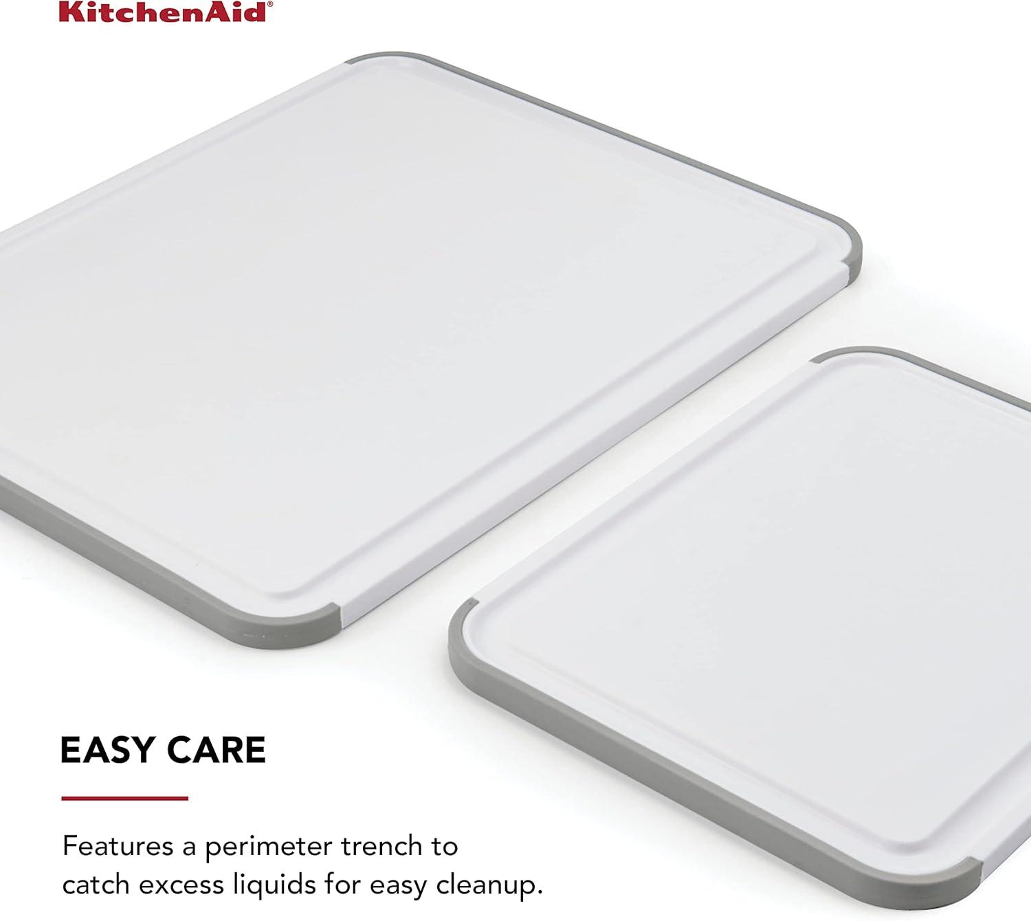 KitchenAid Classic Nonslip 2-Piece Plastic Cutting Board Set with Perimeter Trench and Non Slip Edges, 2-Piece Kitchen Chopping Boards, Dishwasher-Safe, White and Gray(14″L x 11″W)