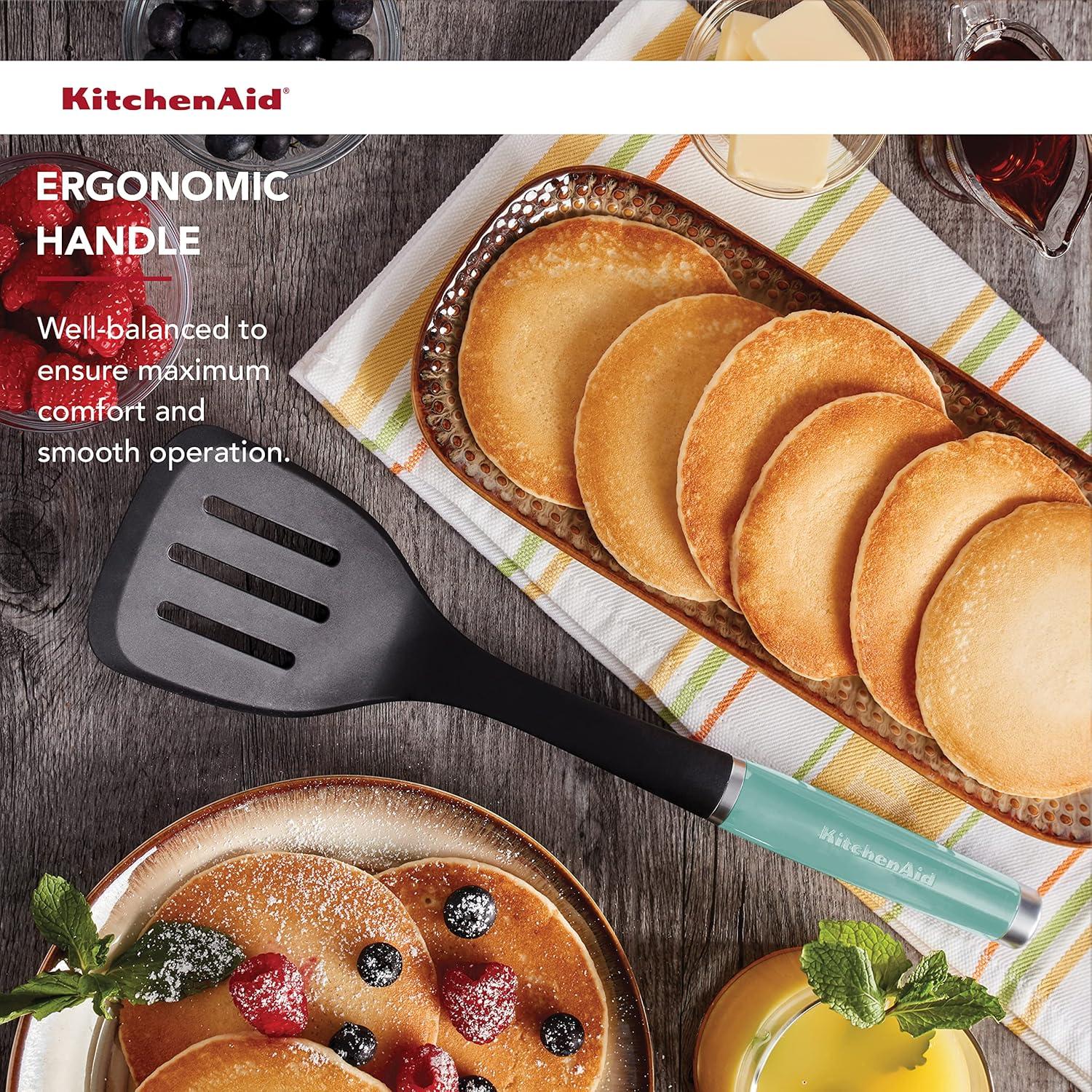 KitchenAid Classic Nylon Slotted Turner, 13.66-Inch, Black(Aqua Sky)