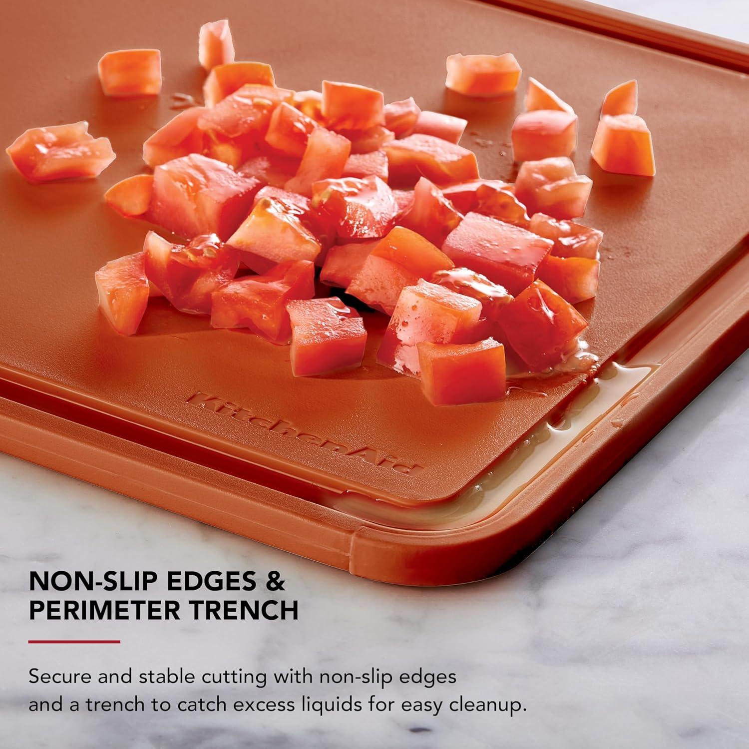 NON-SLIP EDGES & PERIMETER TRENCH: This KitchenAid cutting board offers a secure base for all your culinary tasks, featuring non-slip edges and a perimeter trench for added safety and convenience.