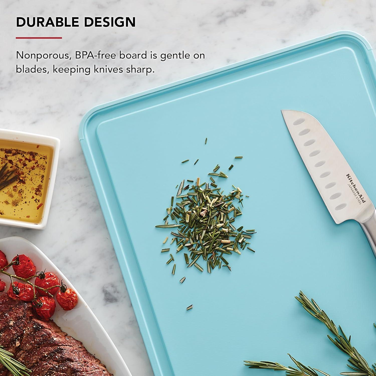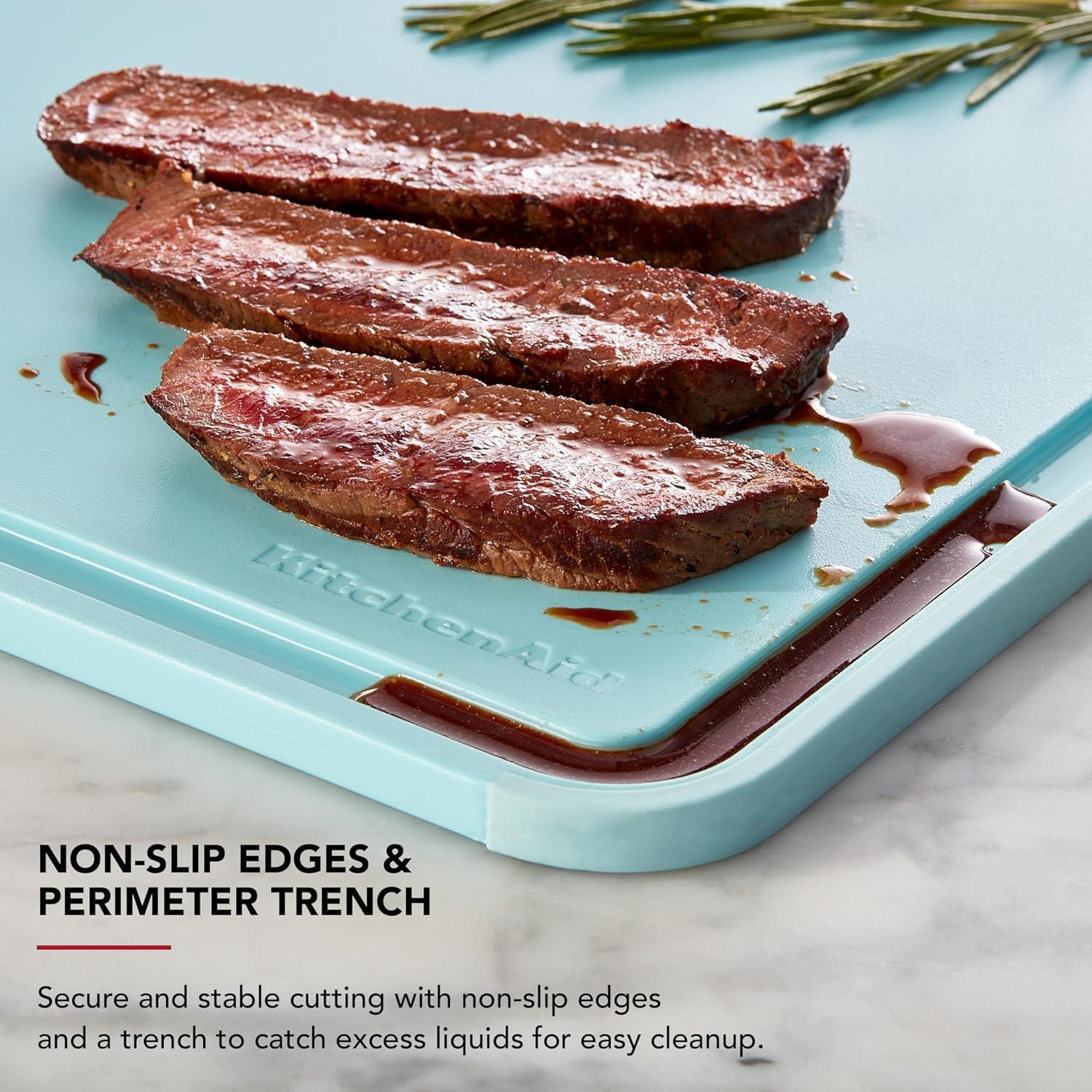 NON-SLIP EDGES & PERIMETER TRENCH: This KitchenAid cutting board offers a secure base for all your culinary tasks, featuring non-slip edges and a perimeter trench for added safety and convenience.