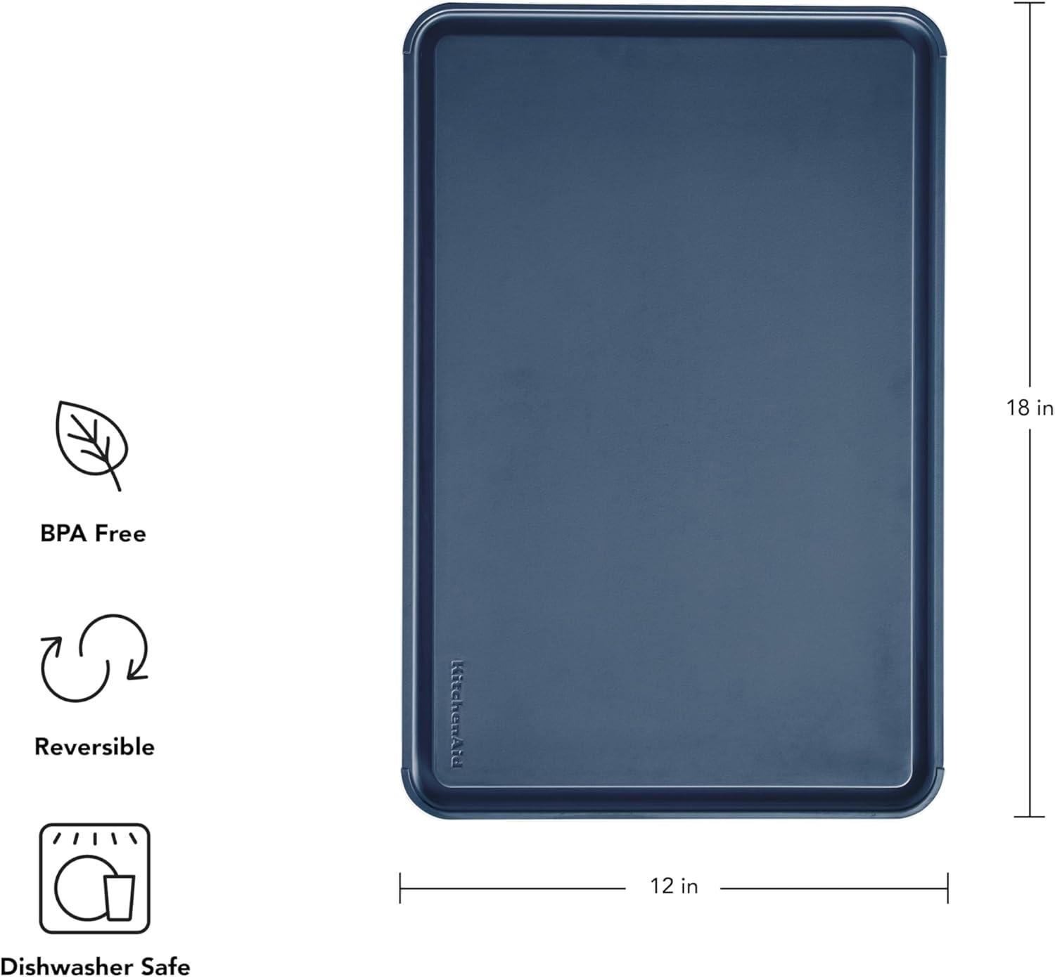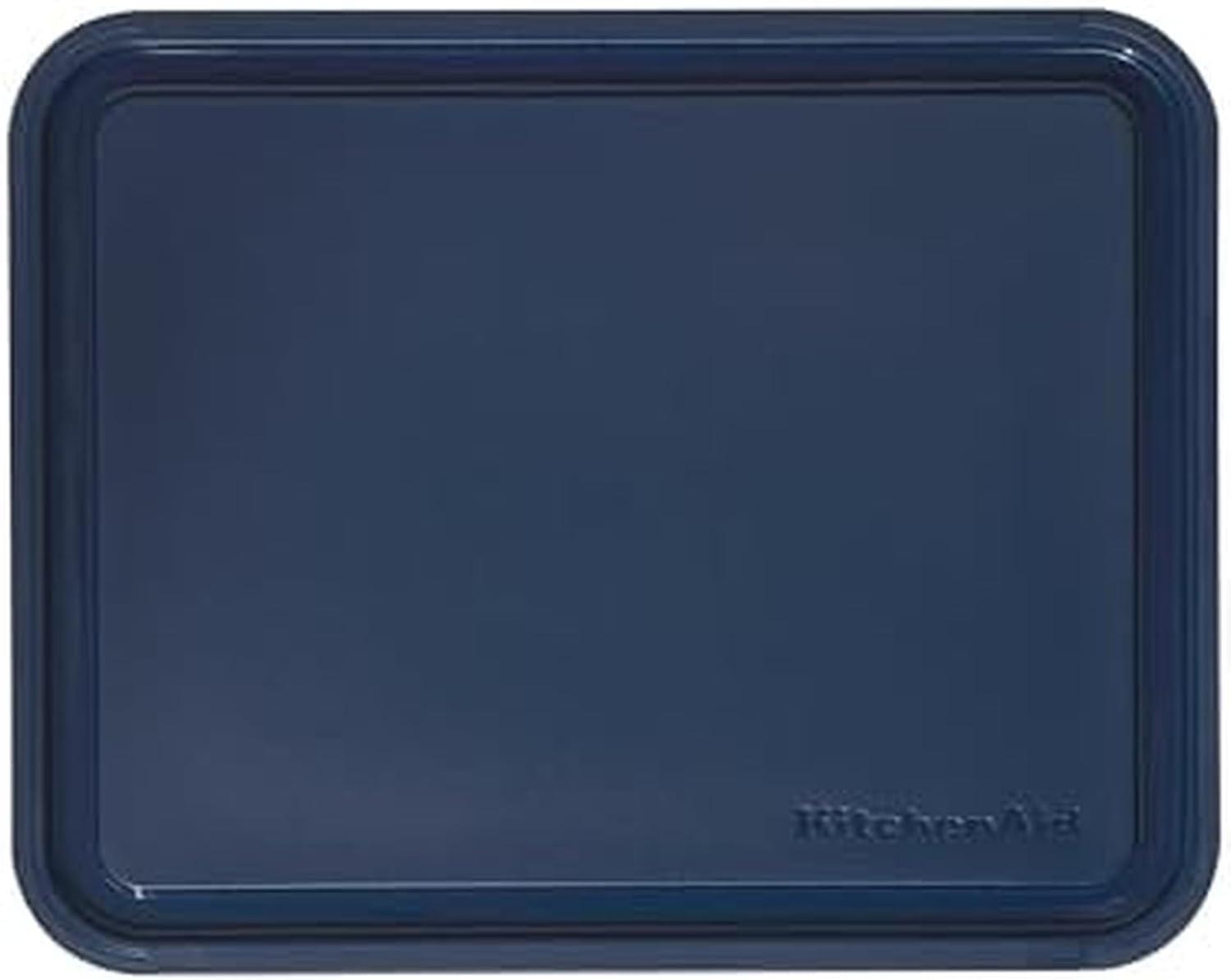 KitchenAid Classic Plastic Cutting Board with Perimeter Trench and Non Slip Edges, Dishwasher Safe, 8 x 10 inch, Scorched Orange(Ink Blue)
