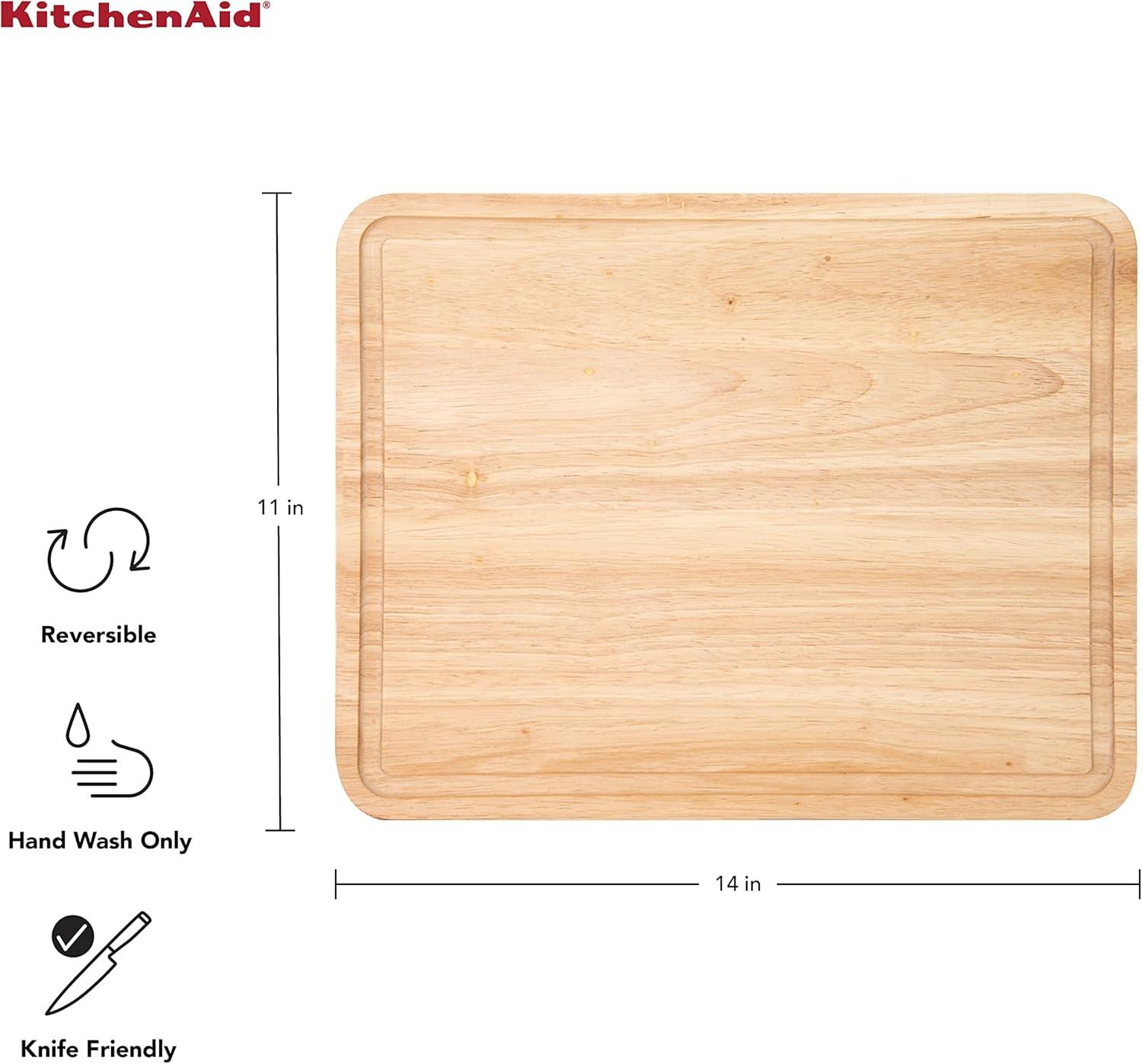 KitchenAid Classic Rubberwood Cutting Board with Perimeter Trench, Reversible Chopping Board, 8-inch x 10-Inch, Natural(14″L x 11″W)