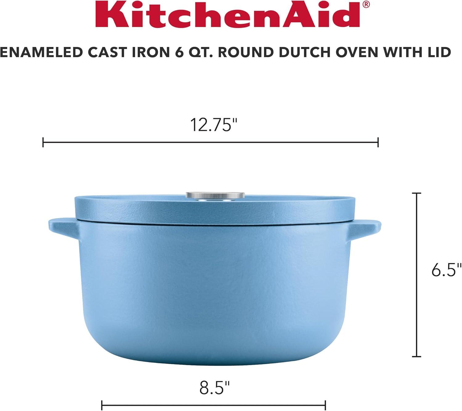 KitchenAid Enameled Cast Iron Dutch Oven/Casserole, 6 Quart, Blue Velvet(Blue Velvet)