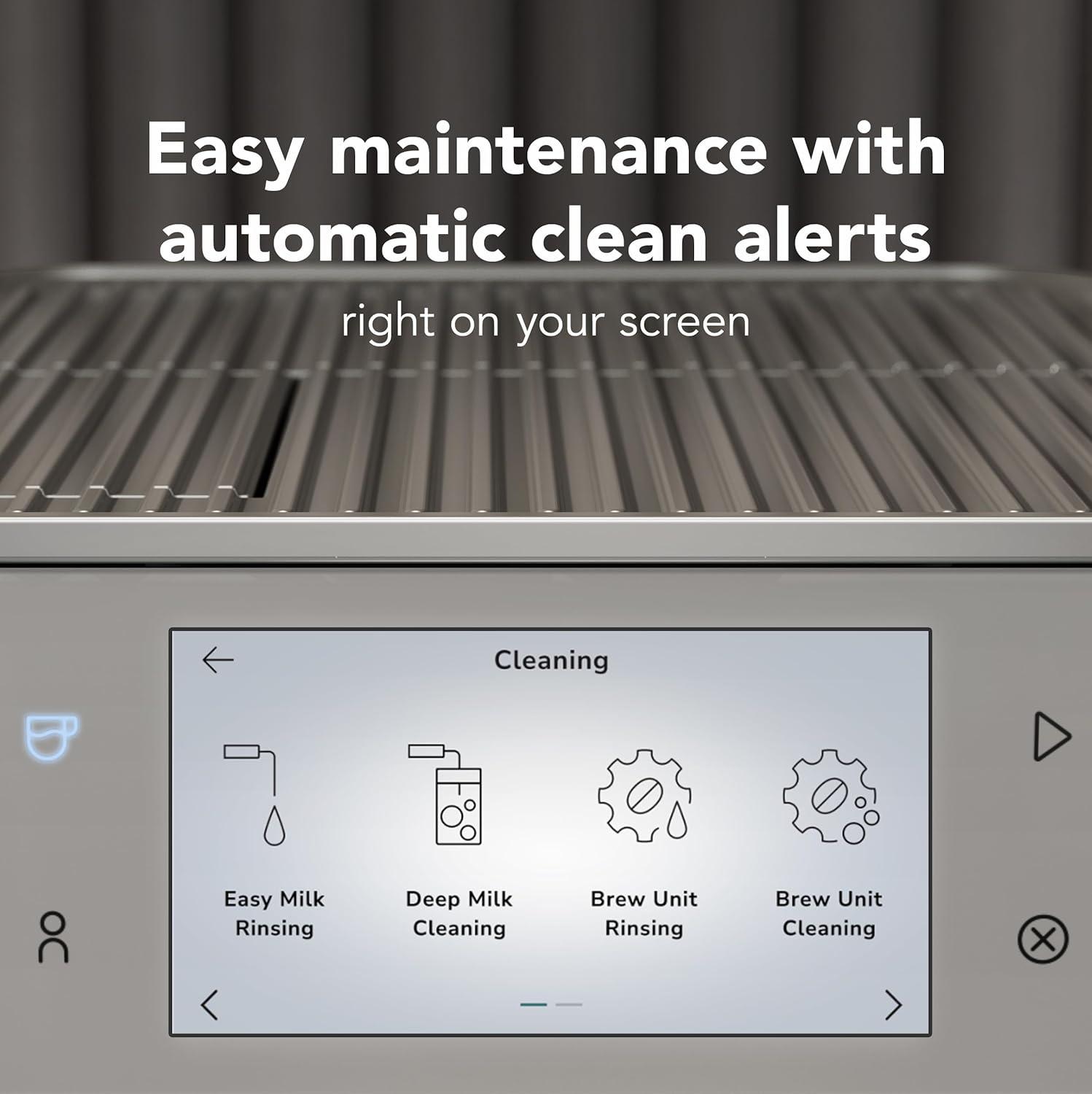 The “Clean Me” indicator light alerts you when the espresso machine requires a cleaning cycle, and the cleaning cycle is programmable for varying water-hardness levels