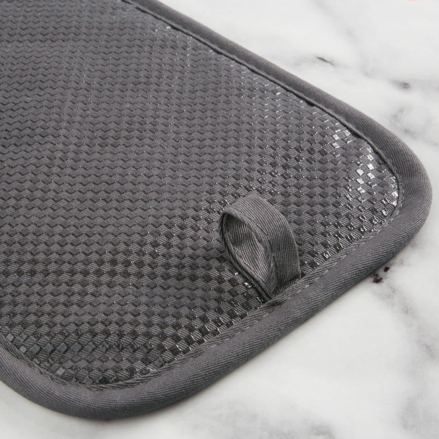SLIP-RESISTANT: Features clear printed silicone to ensure a firm and secure hold when handling hot pots and dishes.