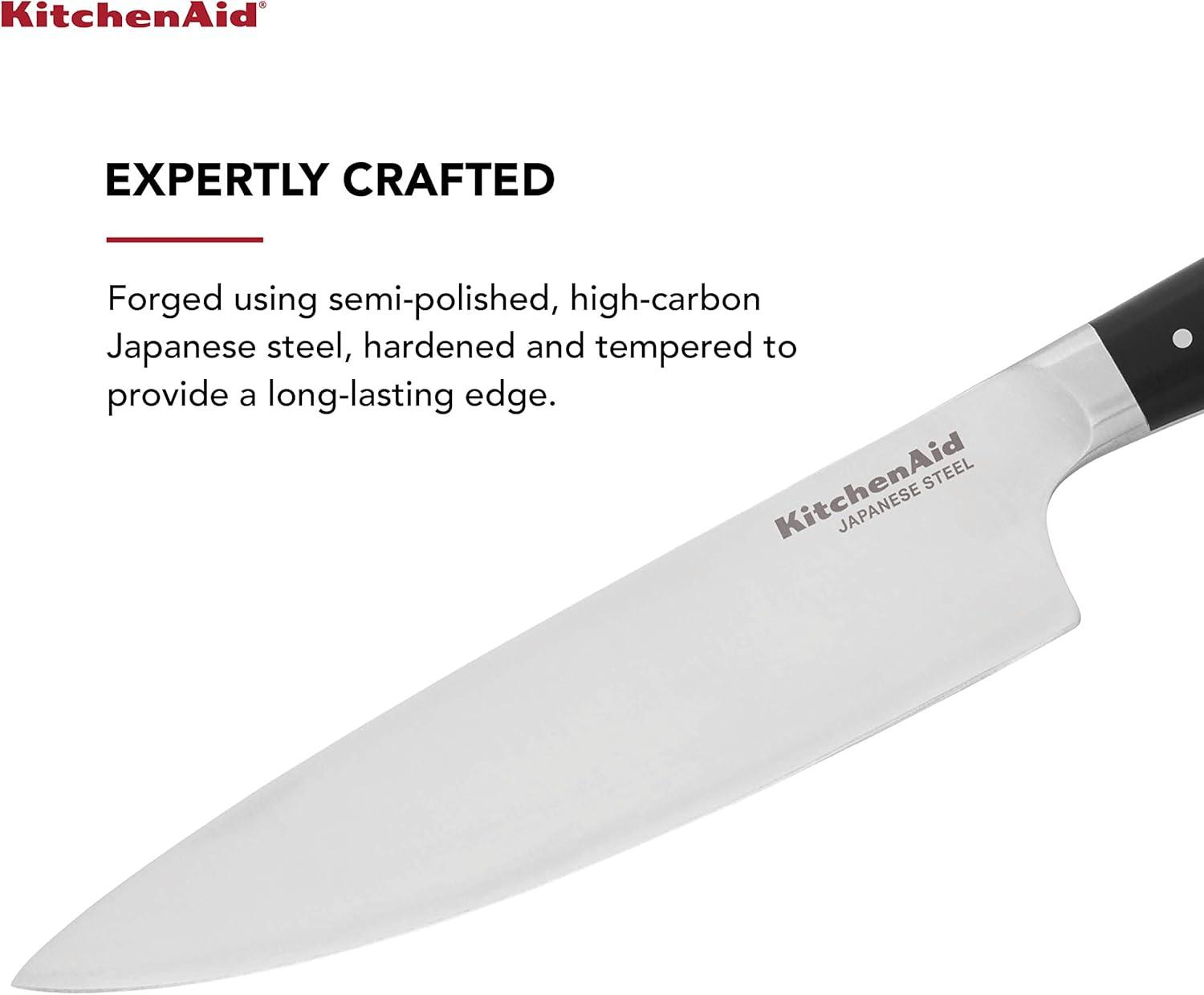 KitchenAid Gourmet Forged Santoku Knife with Custom-Fit Blade Cover, Sharp Kitchen Knife, High-Carbon Japanese Stainless Steel Blade, 5 Inch, Gray(Black)