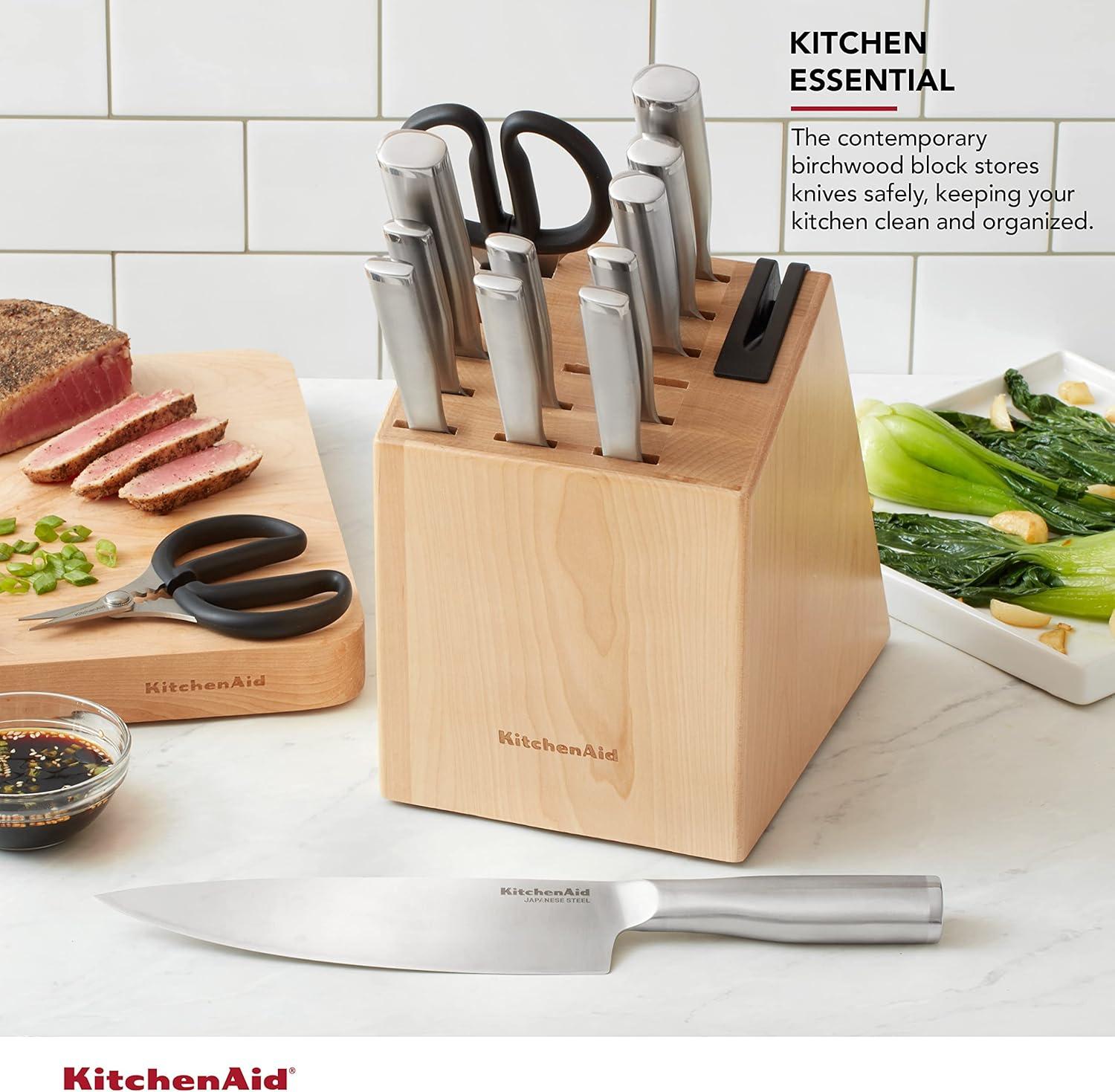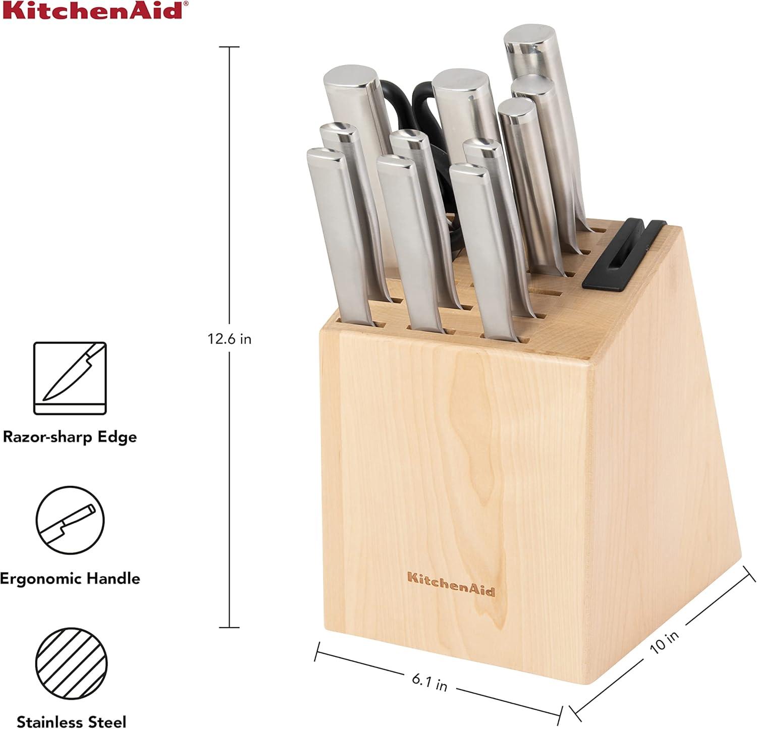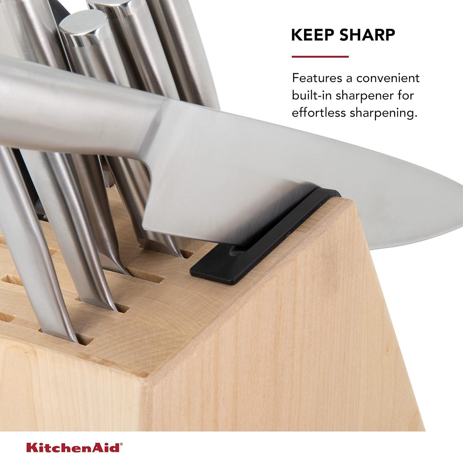 KitchenAid Gourmet Knife Block Set with Built-in Sharpener, 15-Piece, Stainless Steel(Natural)