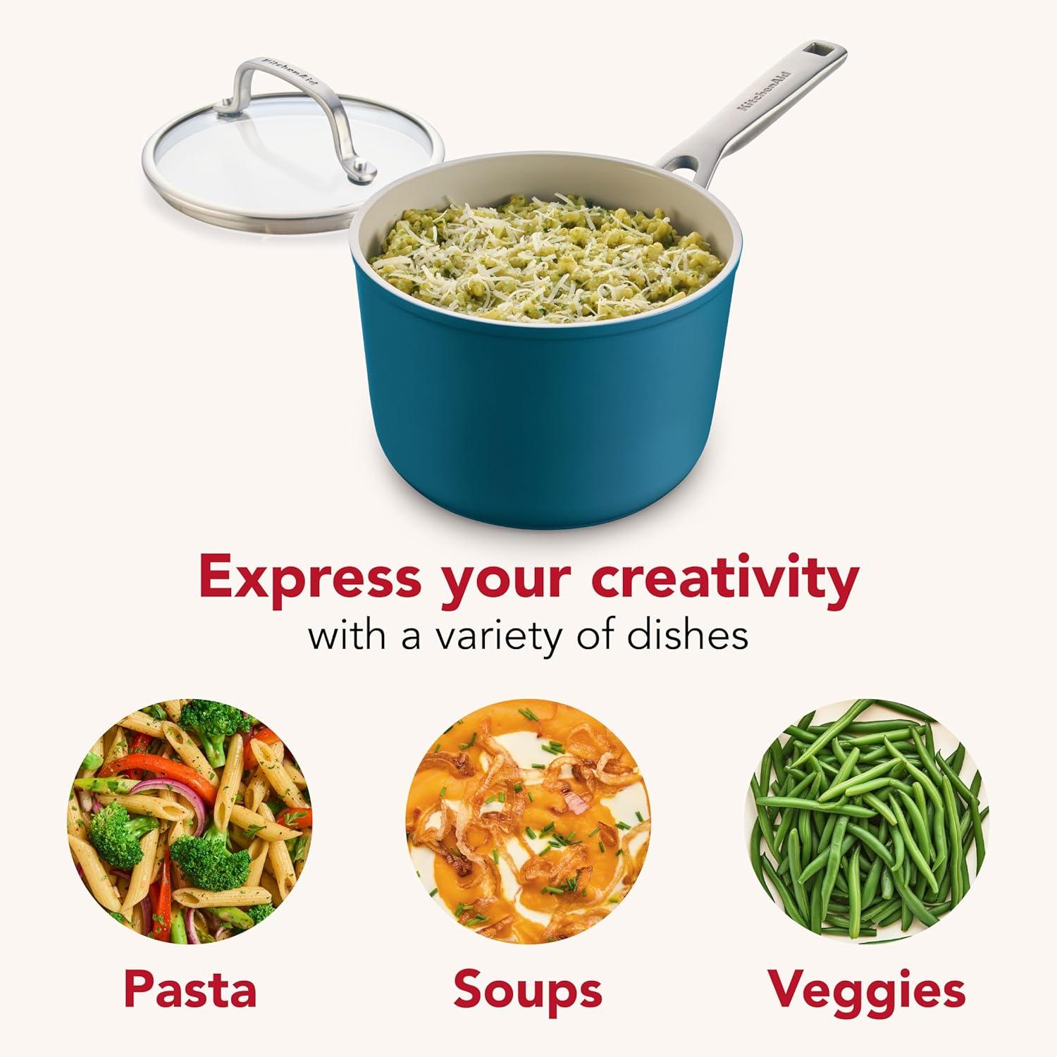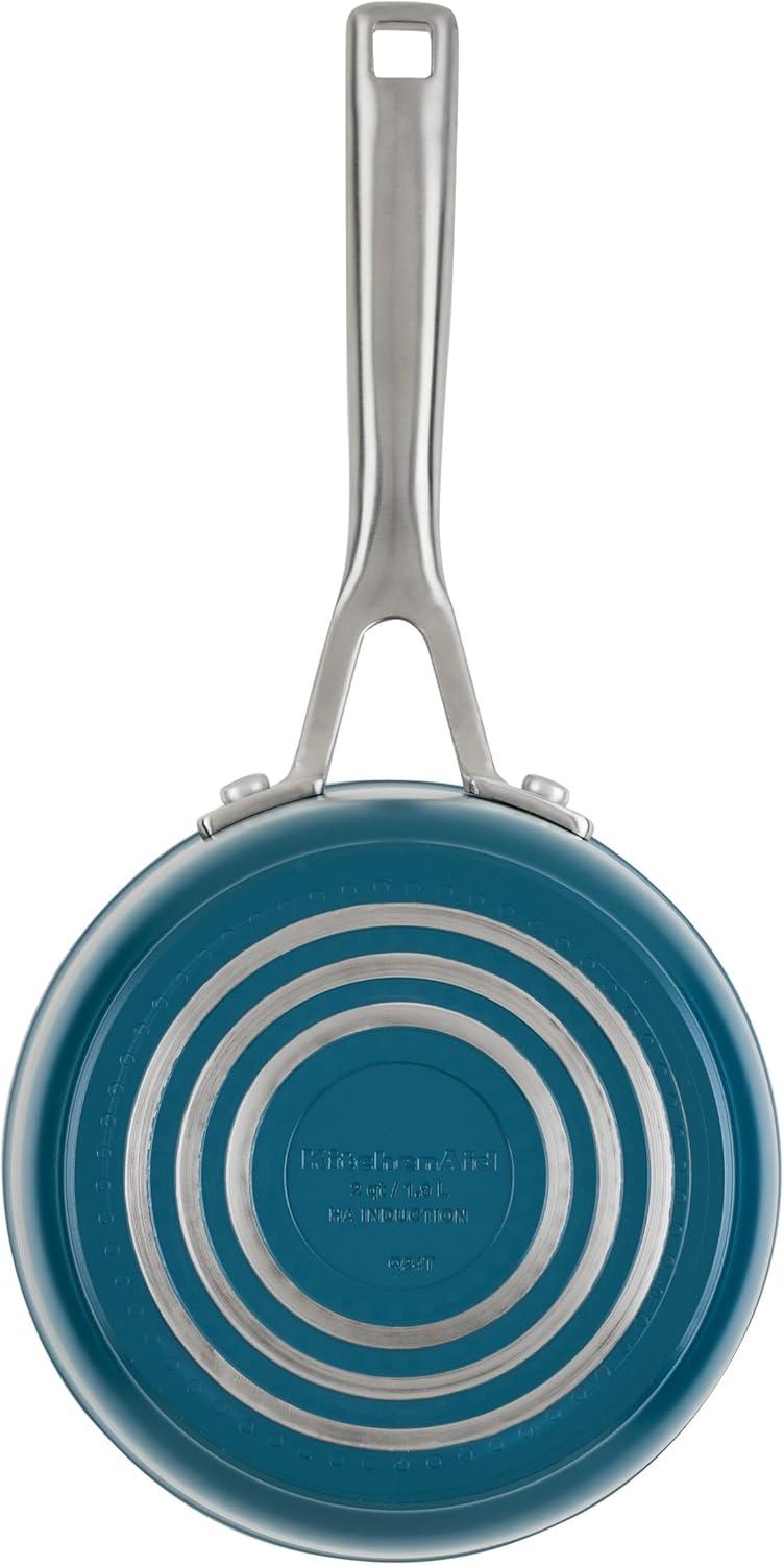 KitchenAid Hard Anodized Ceramic Induction Nonstick Cookware Saucepan with Lid, Dishwasher Safe, 2 Quart Non Stick Sauce Pan with Stainless Steel Handle – Agave Blue(Agave)