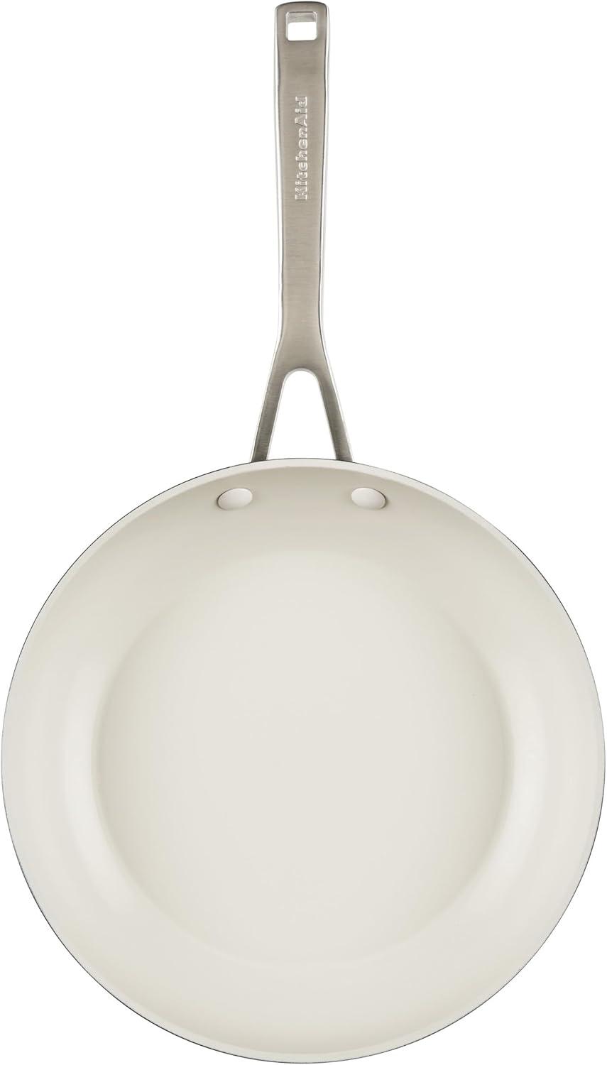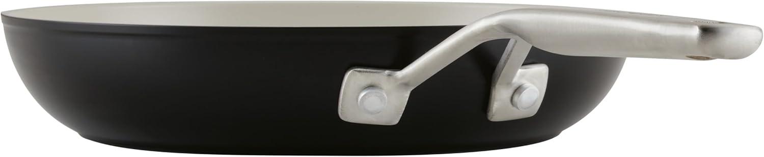 Made for everyday cooking and beautiful kitchen-to-table presentations, KitchenAid Hard Anodized Ceramic Cookware is finished with an easy-clean, ceramic nonstick interior and a durable hard-anodized exterior, crafted with thick, forged aluminum bases and rims to deliver excellent heat conduction and durability. This 9-piece set of kitchen pots and pans is 8x harder than aluminum for lasting performance and includes three frying pans, two saucepans, and a deep stockpot. Bring standout recipes to life in stylish cookware finished in matte black color to suit the contemporary kitchen. Practical features designed for convenience and control include shatter resistant, tempered glass lids and double-riveted stainless steel handles. The long-lasting ceramic nonstick means you'll need less oil (for healthier cooking) and enjoy fast and easy cleanup of sticky and saucy recipes. Oven safe to 500ºF (glass lids to 350ºF), this performance-worthy and presentation-ready cookware set will have your kitchen equipped to make the most of any meal.