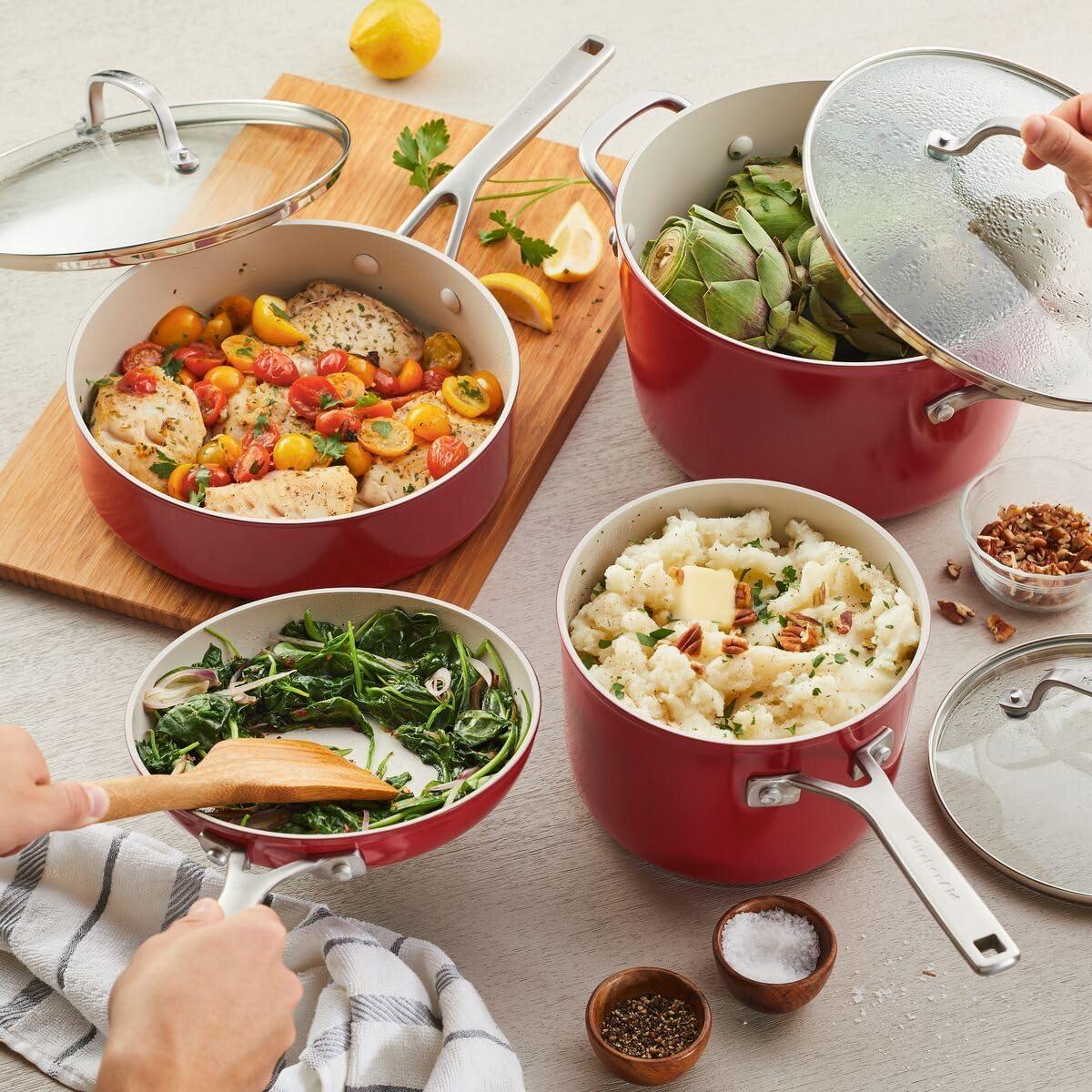 HIGH QUALITY, HIGH PERFORMANCE: 9-piece ceramic nonstick pots and pans set from KitchenAid is backed by a Limited Lifetime Warranty