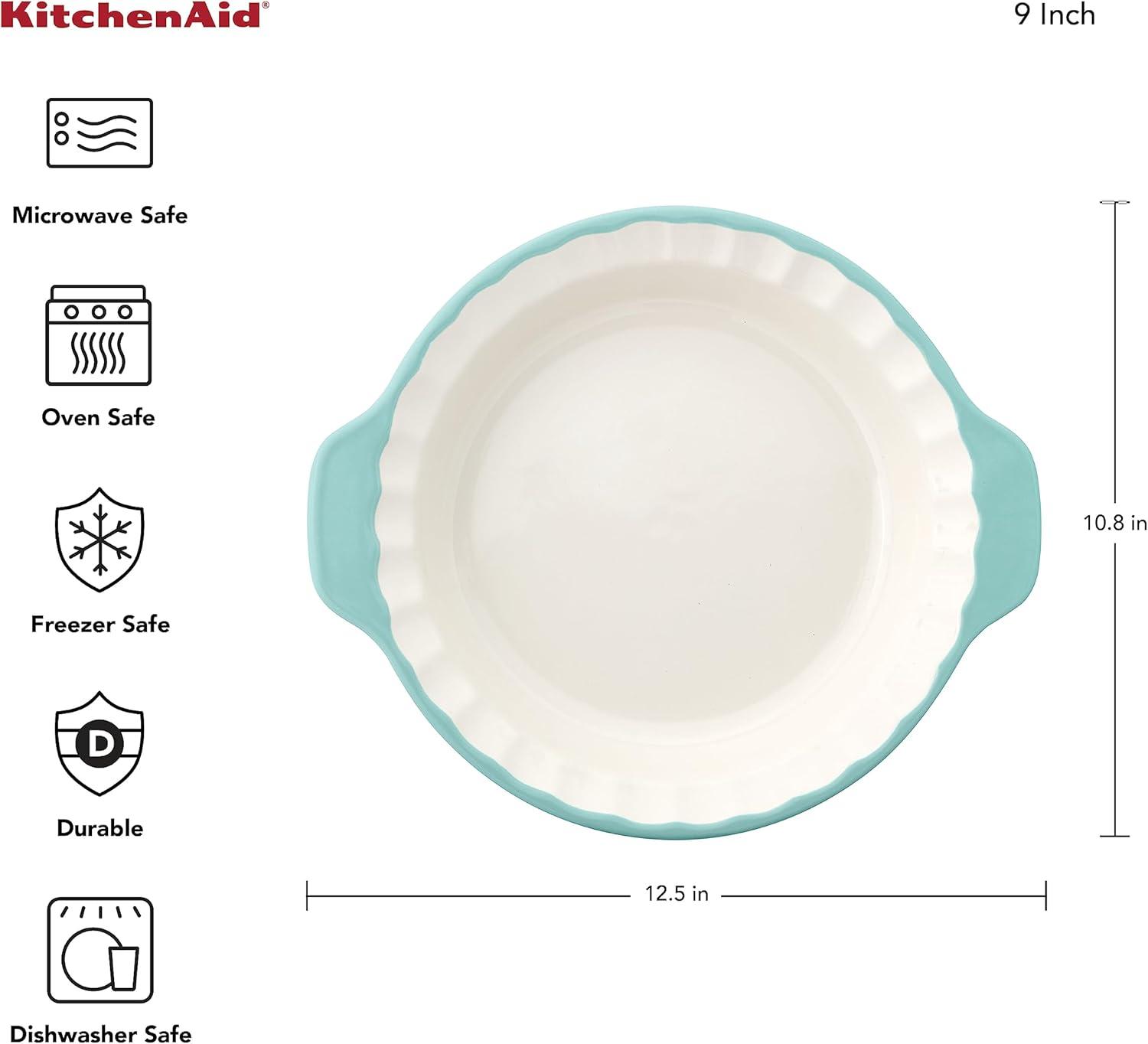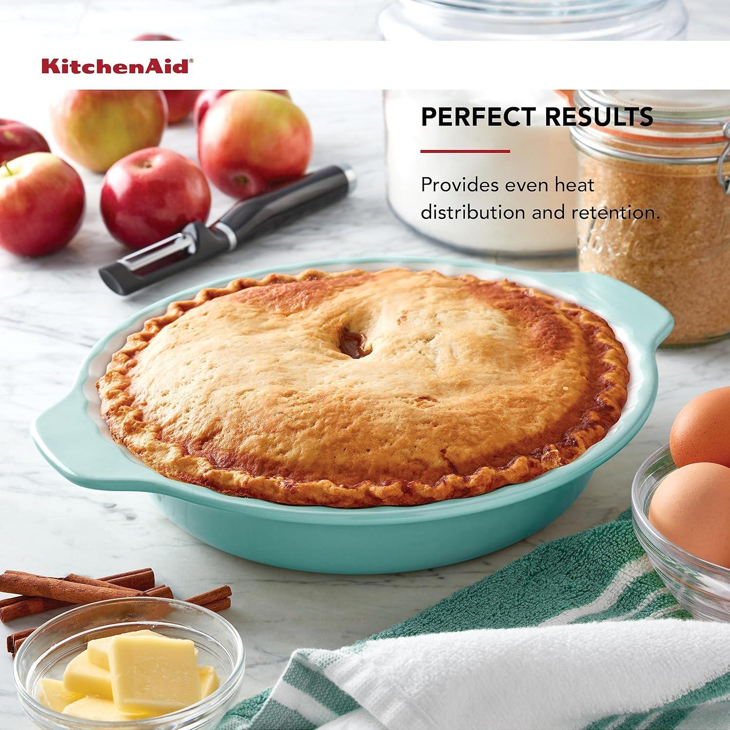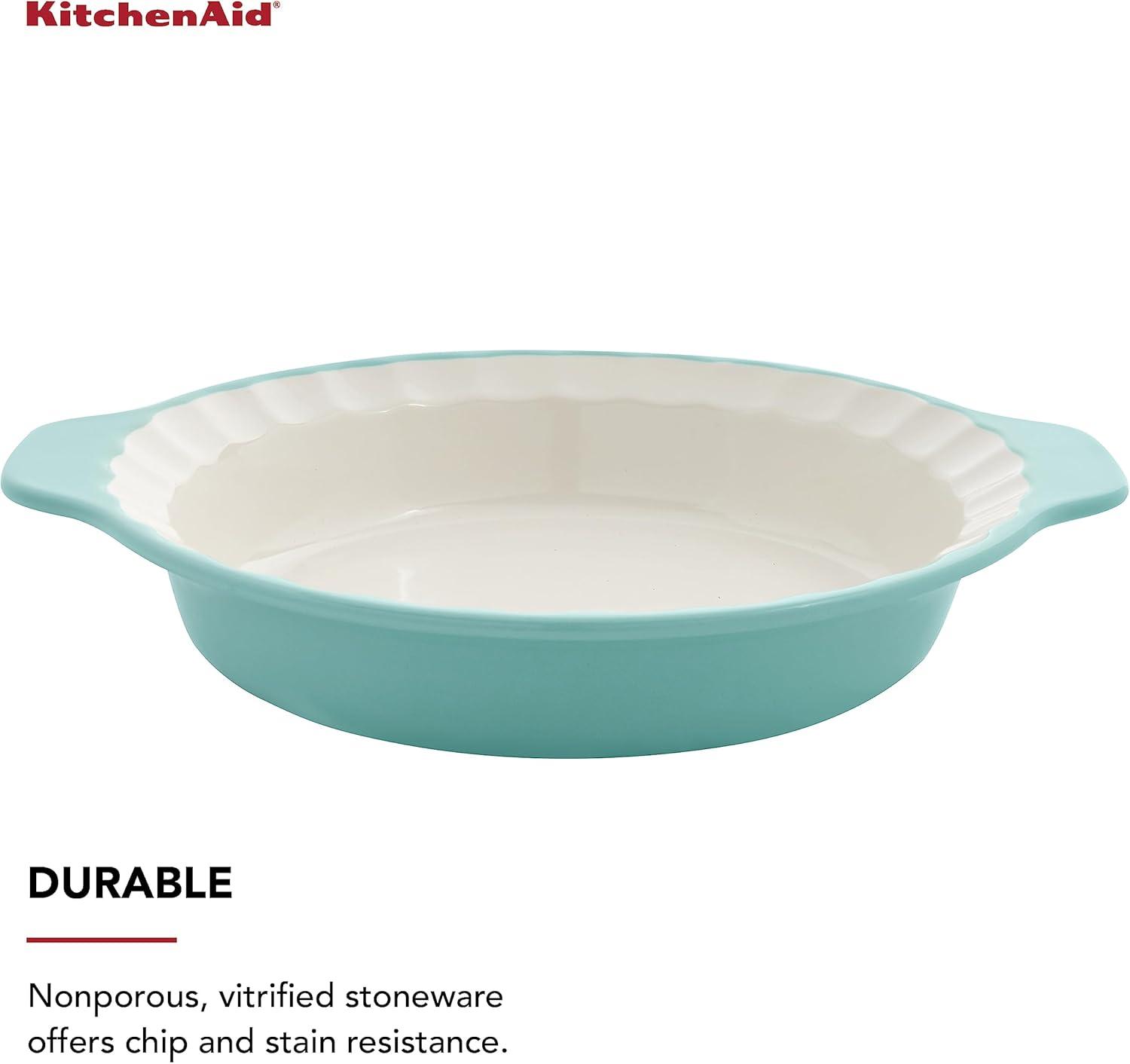 KitchenAid Pie Plate Vitrified Stoneware, 10.83in 12.52in 2.17in, Blue Velvet(Aqua Sky)