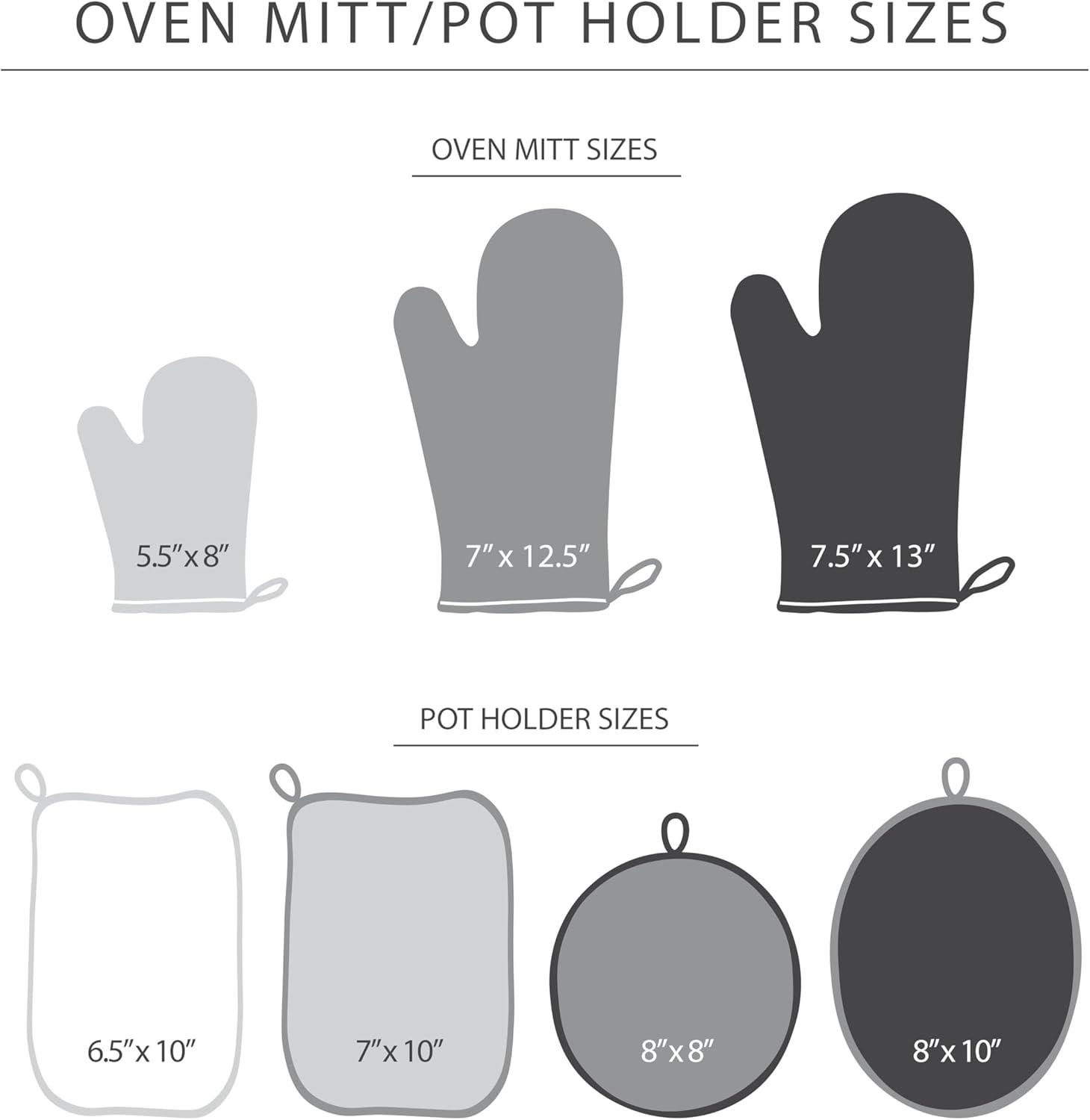 SET OF TWO: Includes two (2) generously sized oven mitts that each measures 7.5″ wide x 13″ long for a comfortable fit.