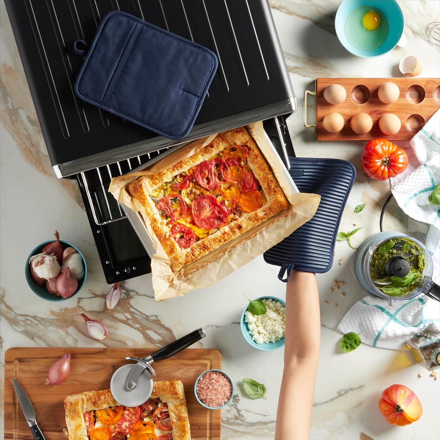 KitchenAid Ribbed Soft Silicone Pot Holder 2-Pack Set, Blue Velvet, 7″x9″(Ink Blue)