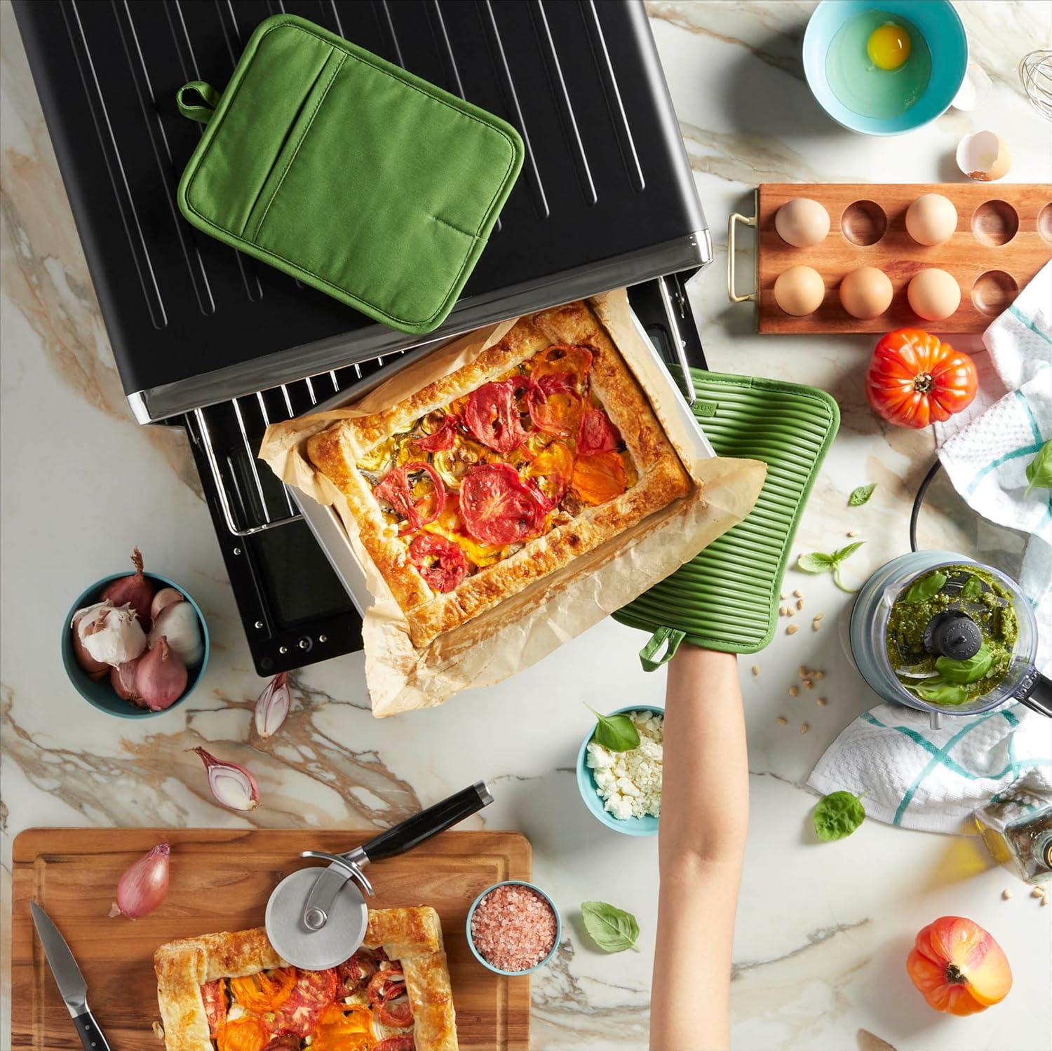 KitchenAid Ribbed Soft Silicone Pot Holder 2-Pack Set, Blue Velvet, 7″x9″(Matcha)