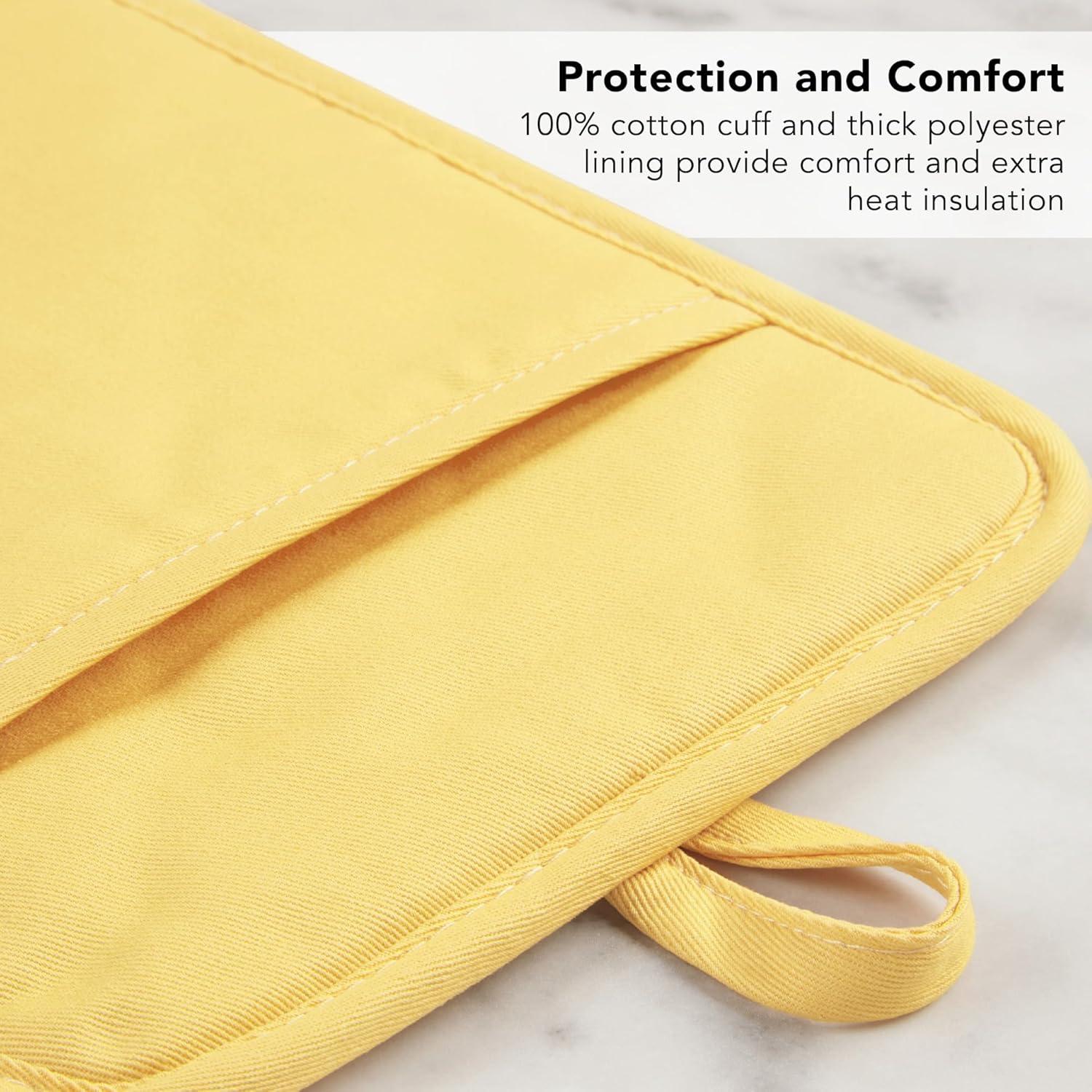ADDITIONAL PROTECTION & COMFORT: One side of the pot holder is made of 100% cotton that provides additional protection from the heat with a pocket that has polyester lining that offers comfort and insulation.