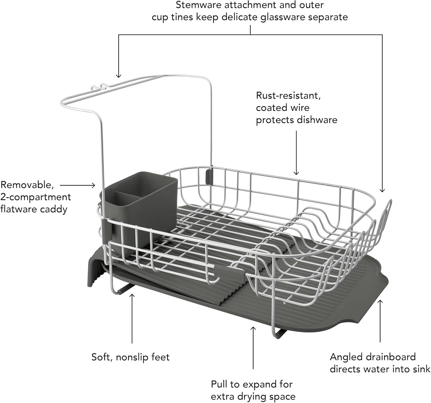KitchenAid Satin Wire Expandable Dish Rack, 23.18-Inch, Gray