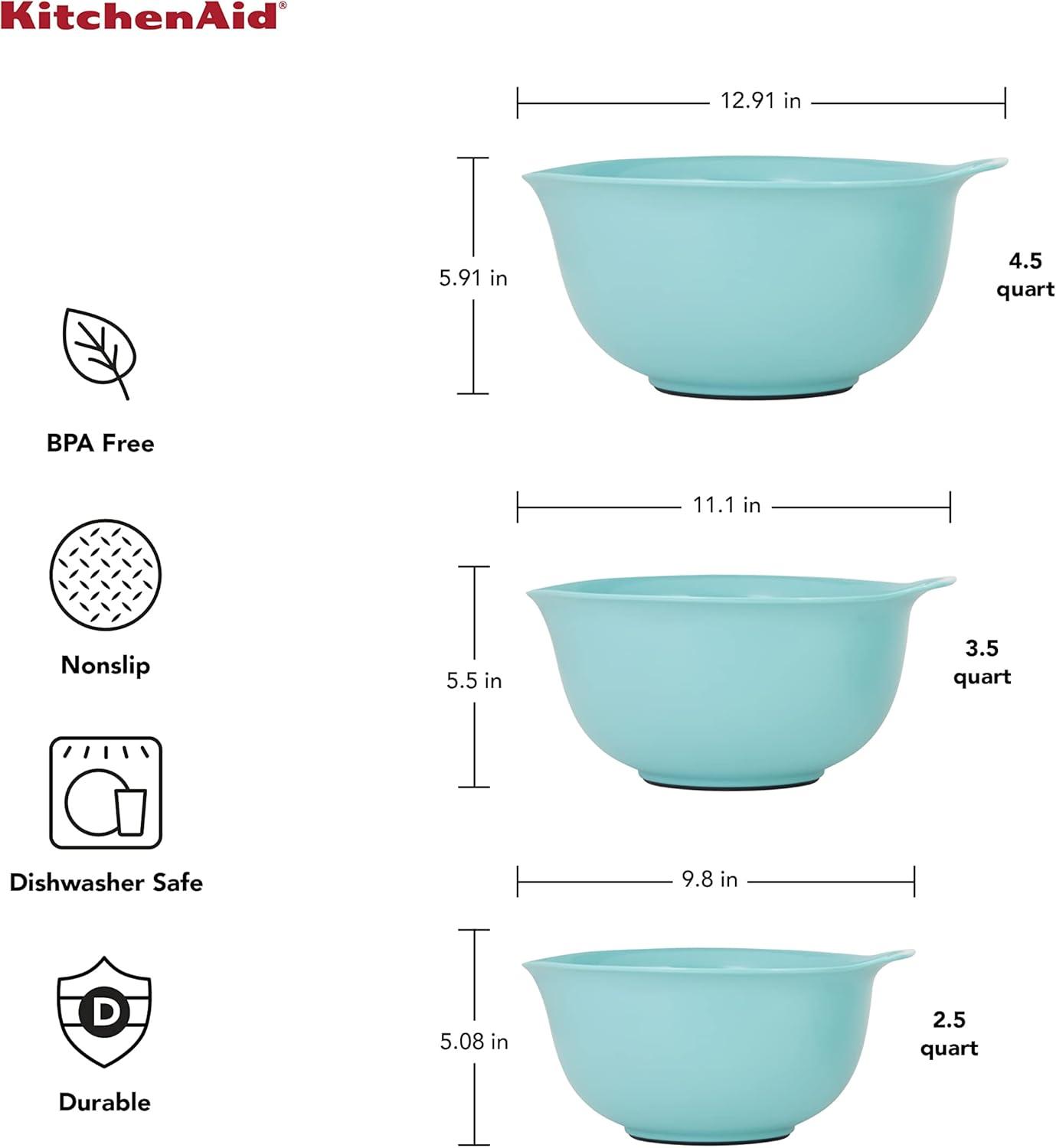 KitchenAid Stainless Steel Mixing Bowls, Set Of 3(Aqua Sky)