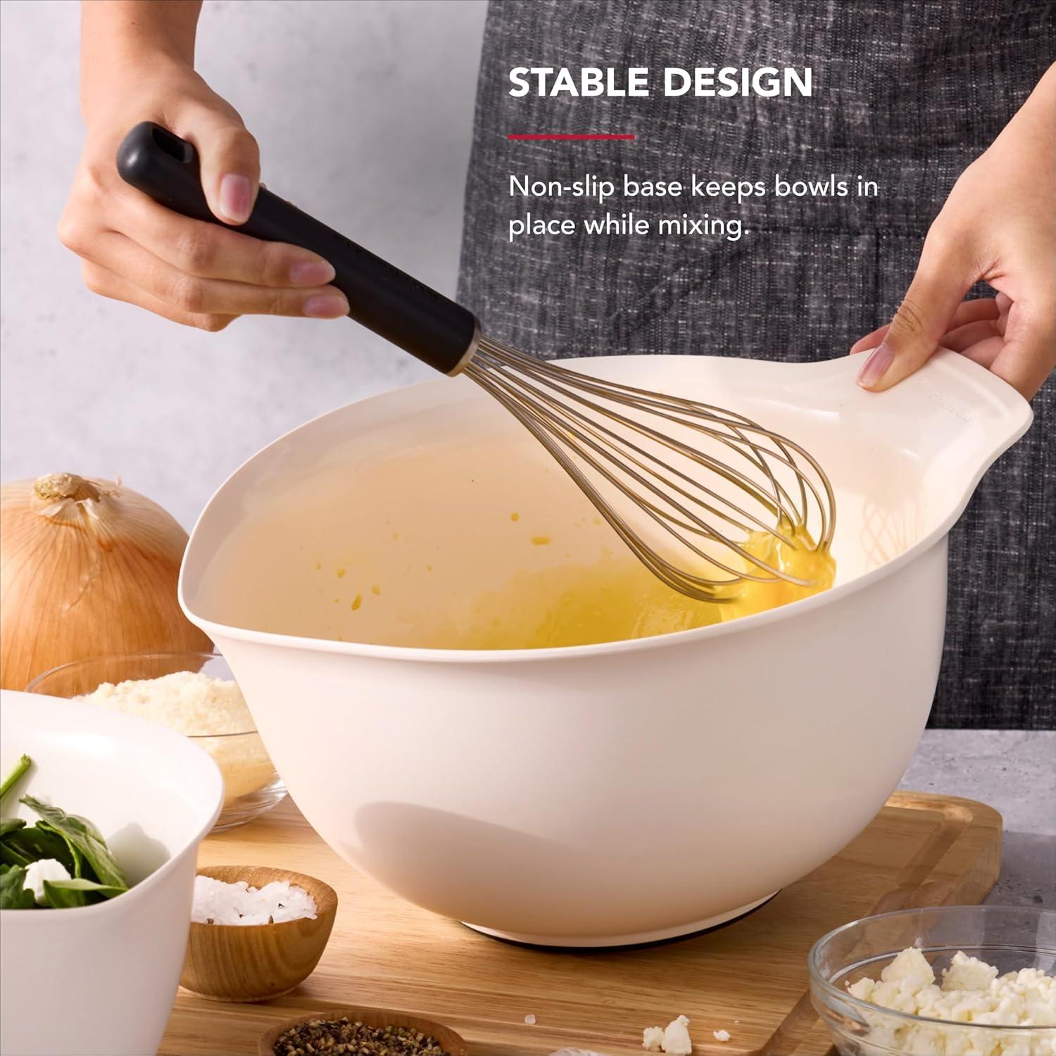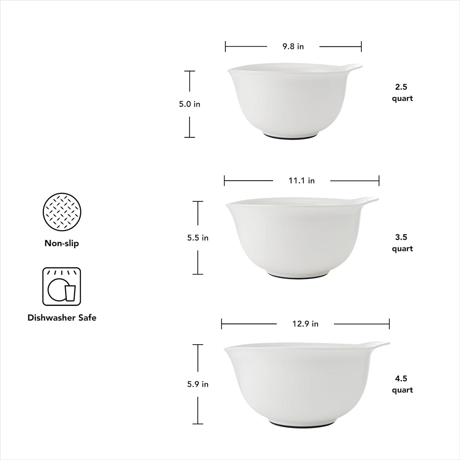 VERSATILE SET: perfect for mixing ingredients for recipes, dressing salad, marinating meat, and storing or serving food; includes 1.5-quart, 3-quart, and 5-quart bowls