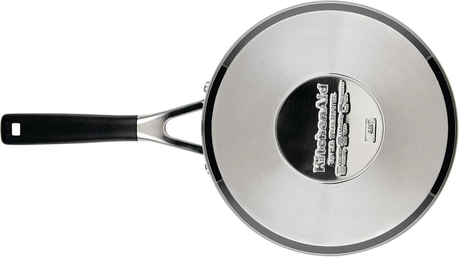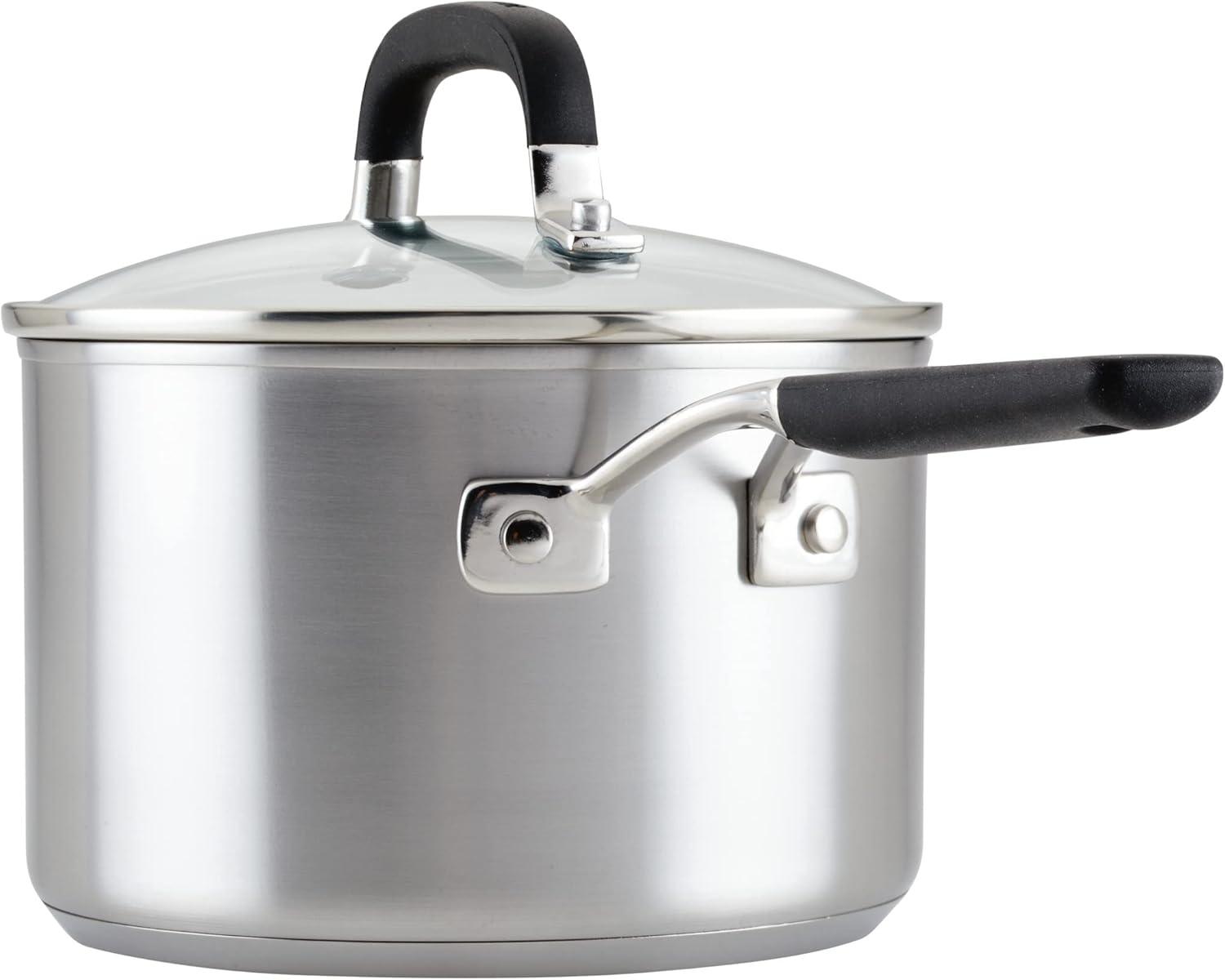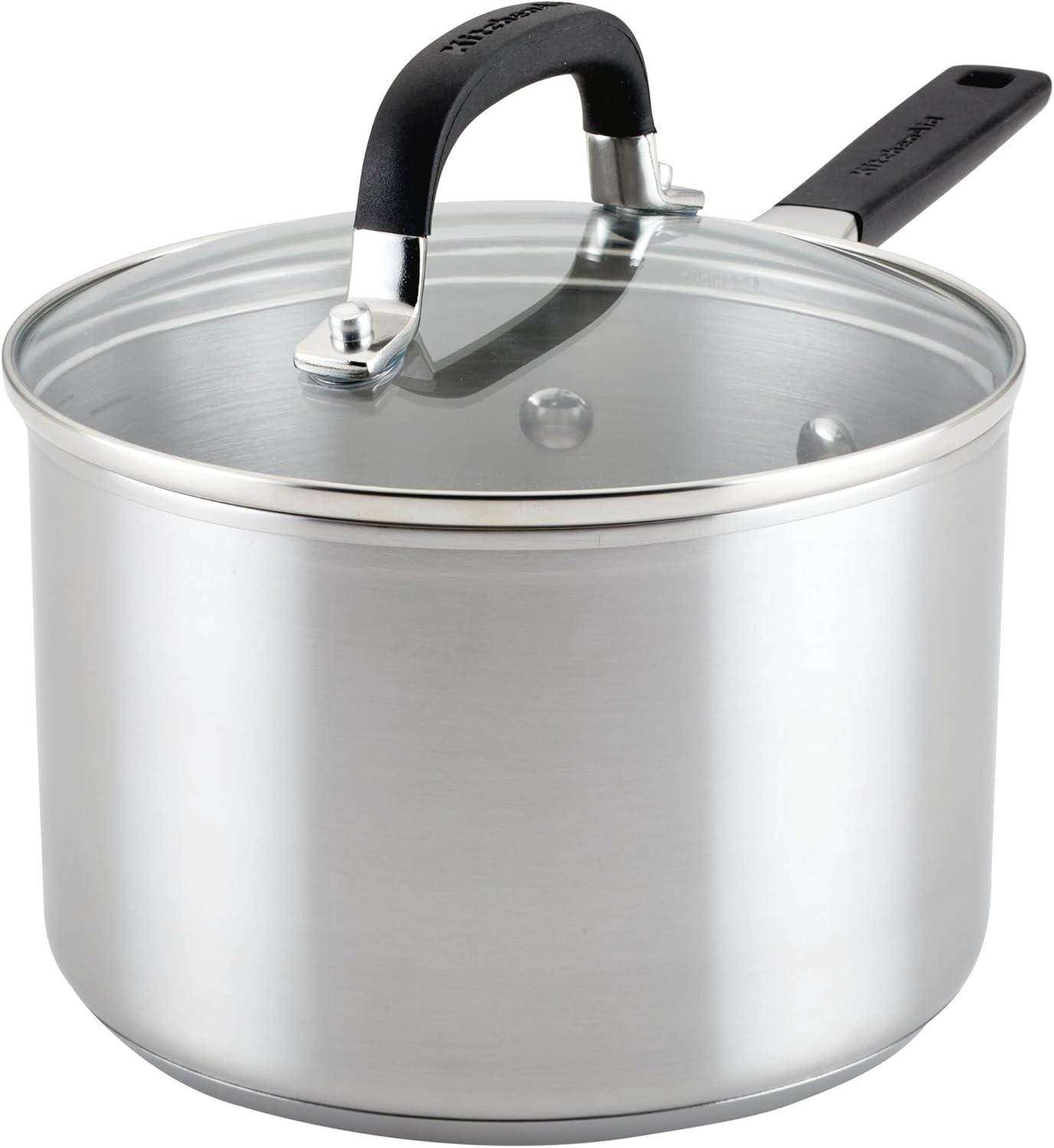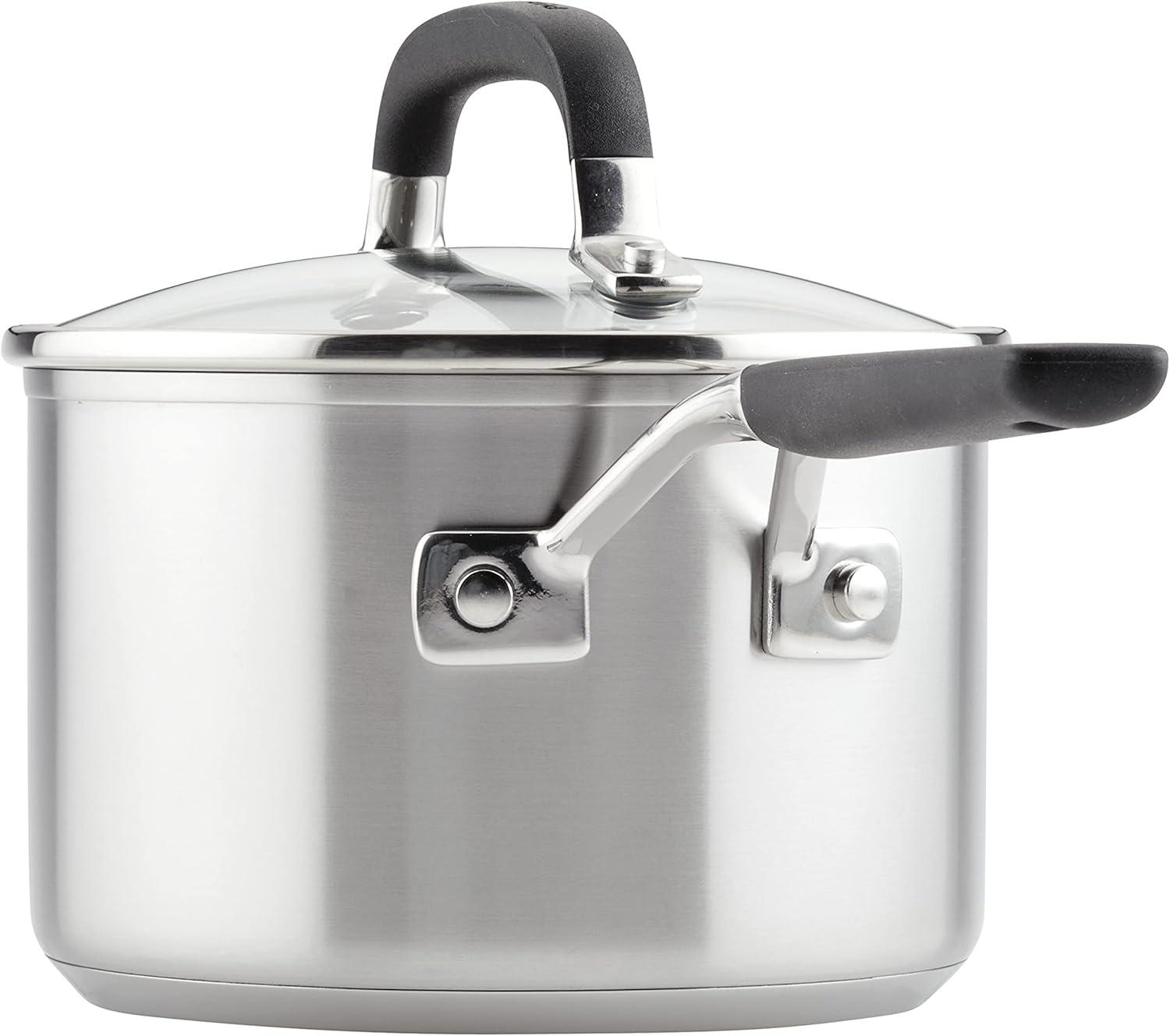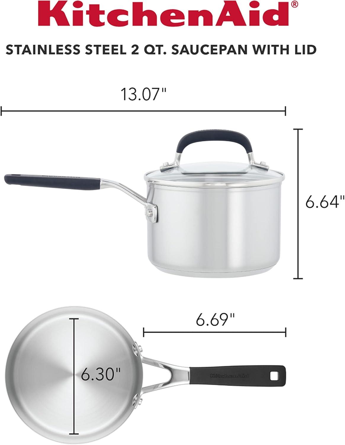 KitchenAid Stainless Steel Saucepan with Measuring Marks and Lid, 2 Quart, Brushed Stainless Steel(Brushed Stainless Steel)
