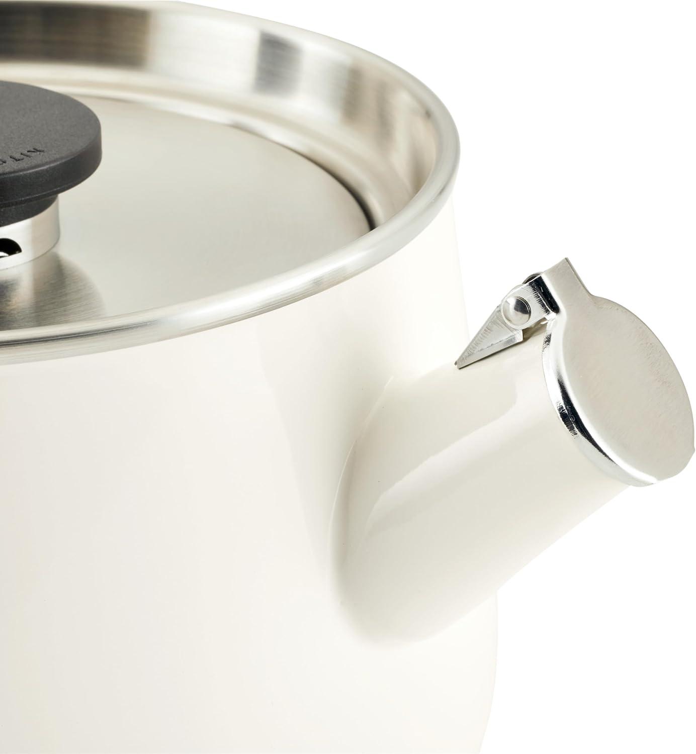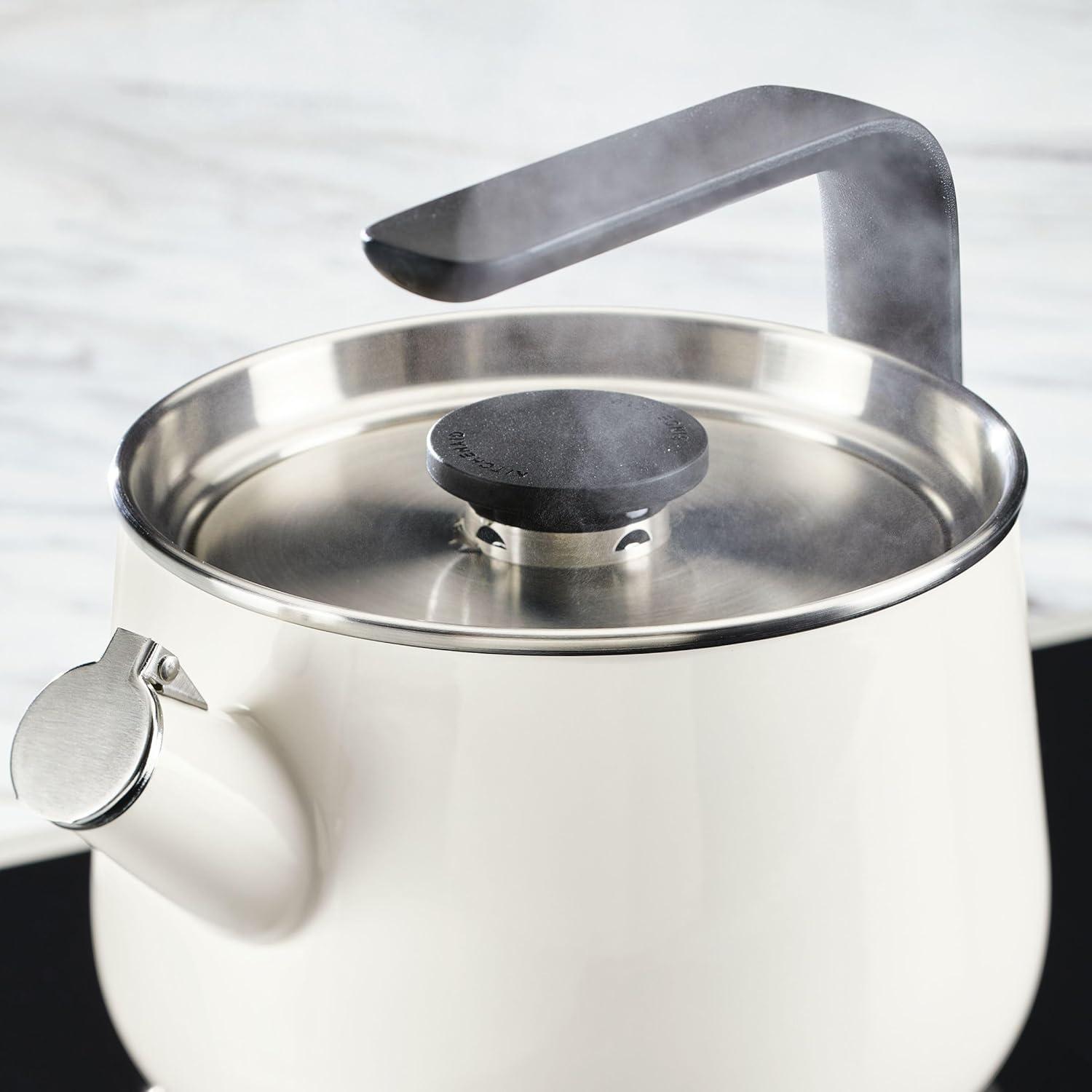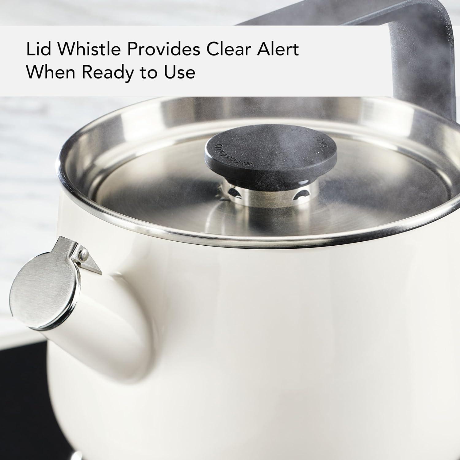 KitchenAid Teakettles Enamel-on-Steel Stovetop Whistling Teakettle, Induction Ready, Stainless steel Lid, 2 Quart – White(White)