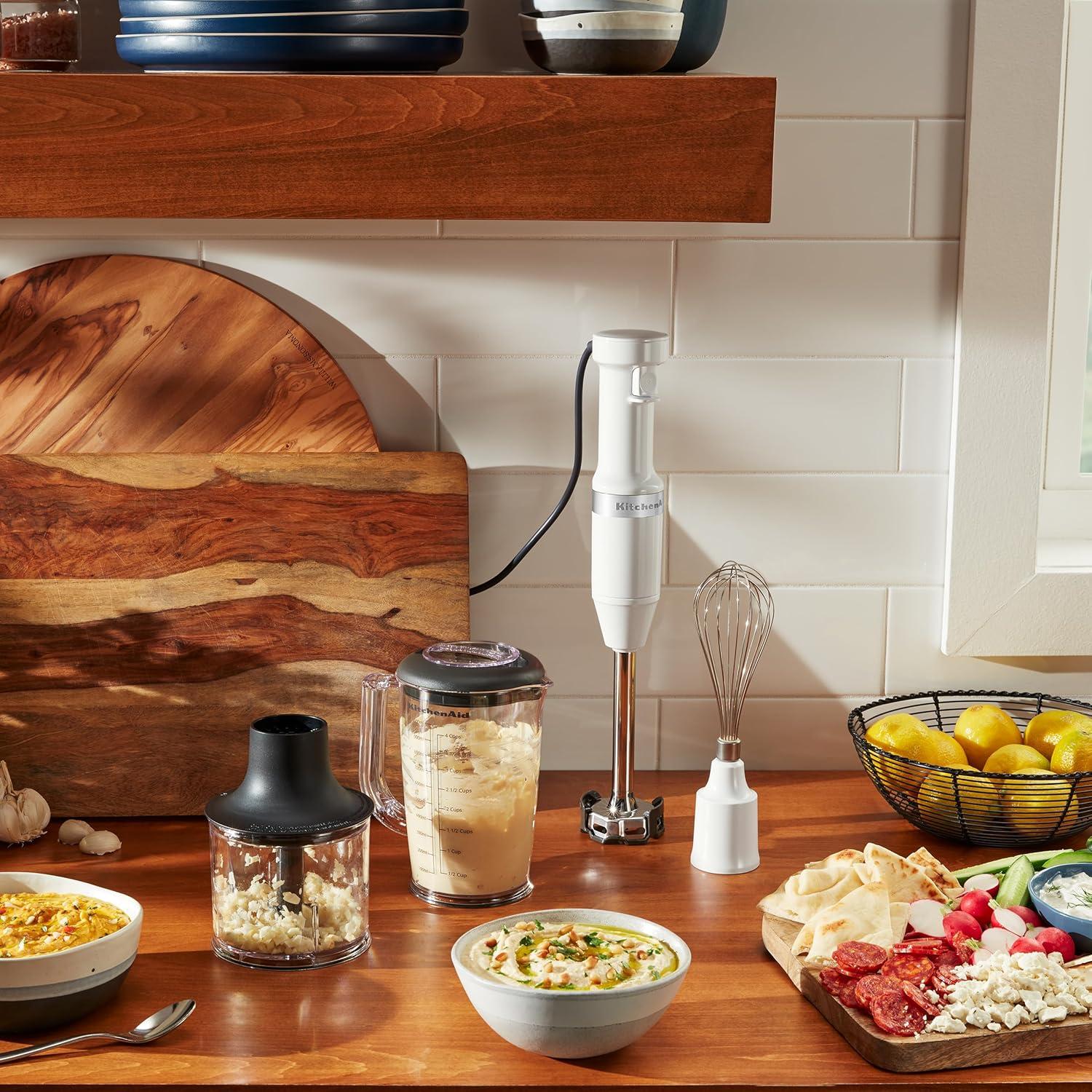 KitchenAid Variable Speed Corded Hand Blender with Accessories, Blue Velvet, KHBV83VB(White)